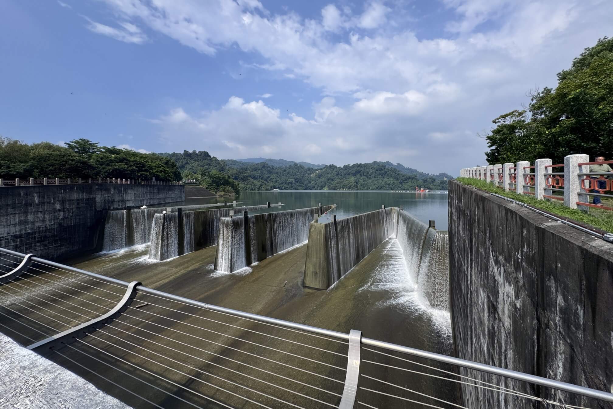 2025/08/16 苗栗縣>三義鄉>鯉魚潭水庫>風光明媚潭水景色、全國唯一鋸齒堰溢洪道-季節限定溢流美景,氣勢磅礡。順遊漫步雲端森林廚房,享受隱藏山中的景觀美食