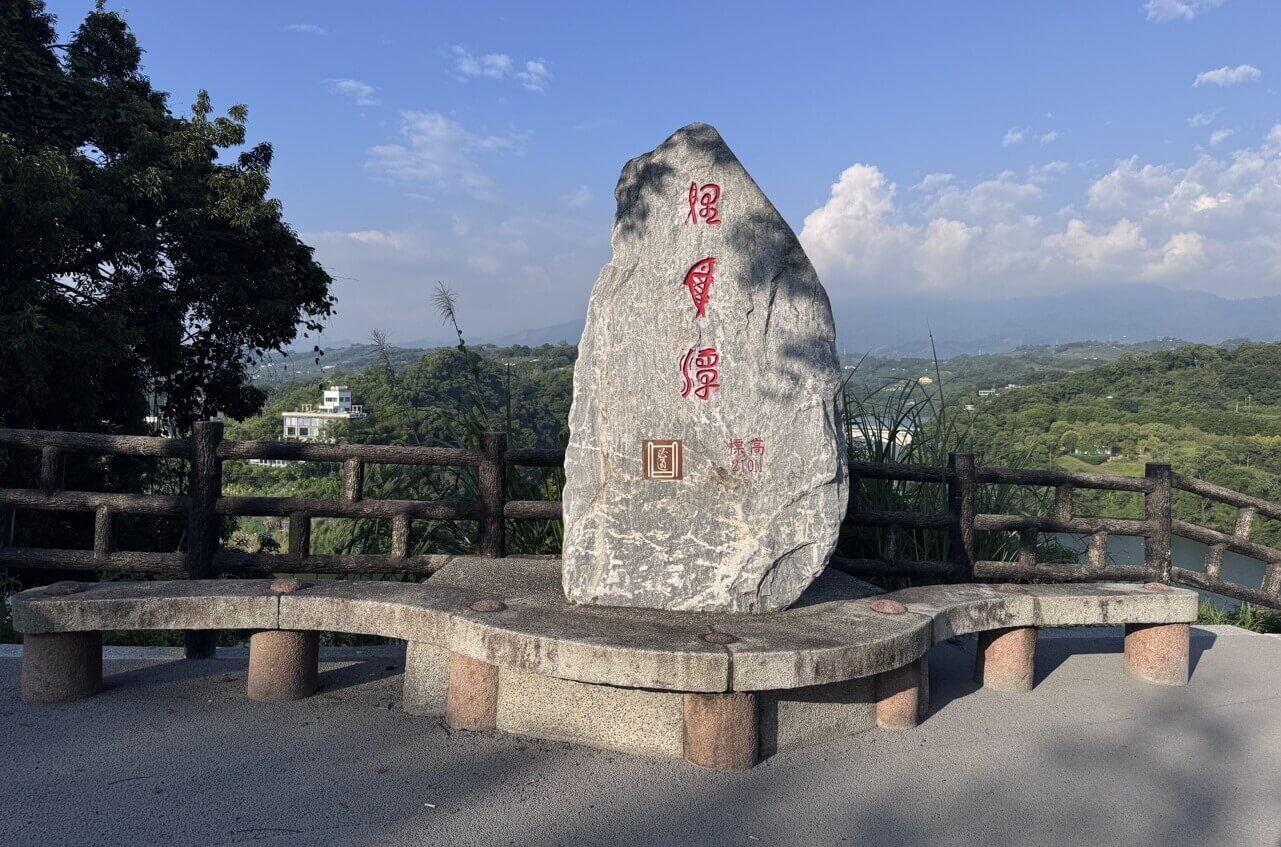 ↓鯉魚潭水庫有好幾處觀景台,我們離開繼續開車,來到另一處觀景台。這座「鯉魚潭」石碑,乍看之下,以為是寫著「日月潭」呢!