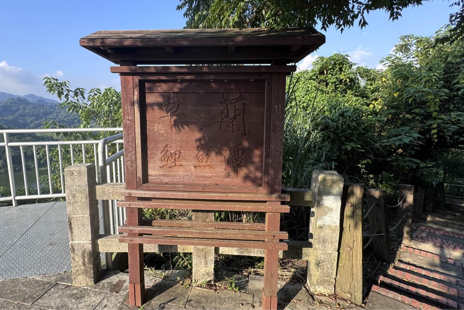 ↓從石階爬上來的觀景台,看到另一座木牌,上面寫著「卓蘭鯉魚潭」,沒錯,苗栗的鯉魚潭,其實是跨三義鄉與卓蘭鎮的。