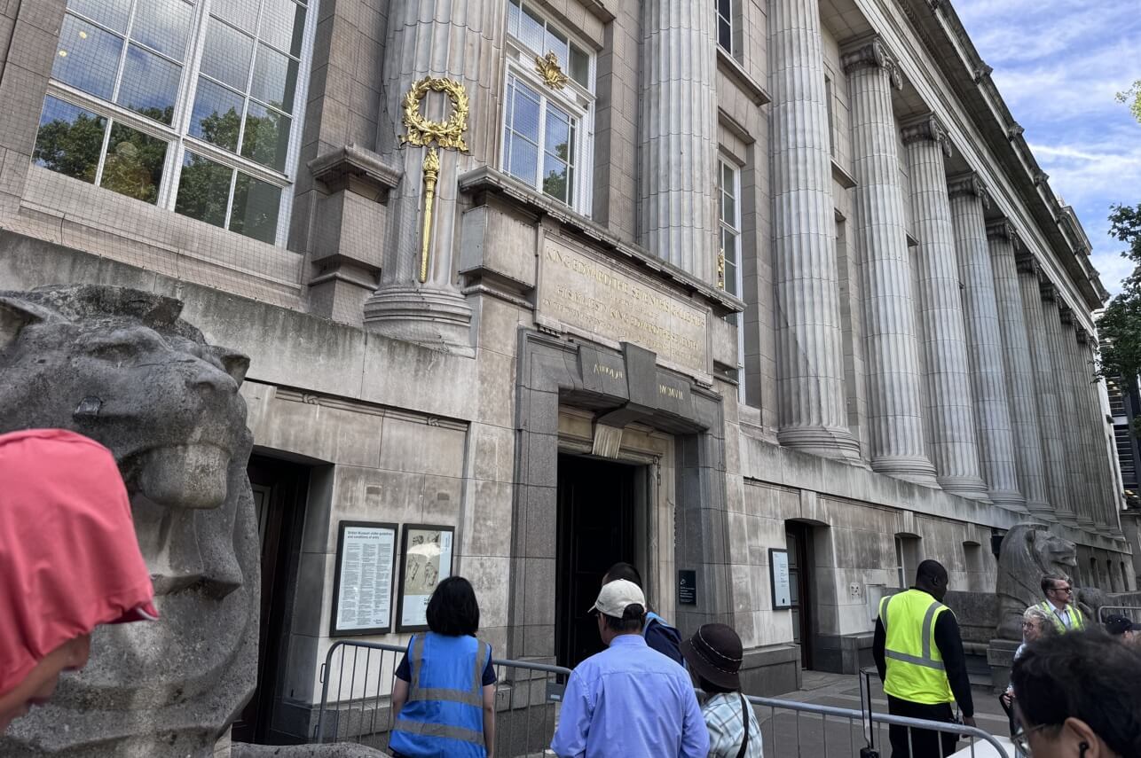 ↓世人不論講『三大博物館』或『四大博物館』,大英博物館都名列其中,可見其規模及歷史。我們到的時候,已經有許多的遊客排隊中。我們今天有一位來自大陸、在倫敦定居的中文導覽員。