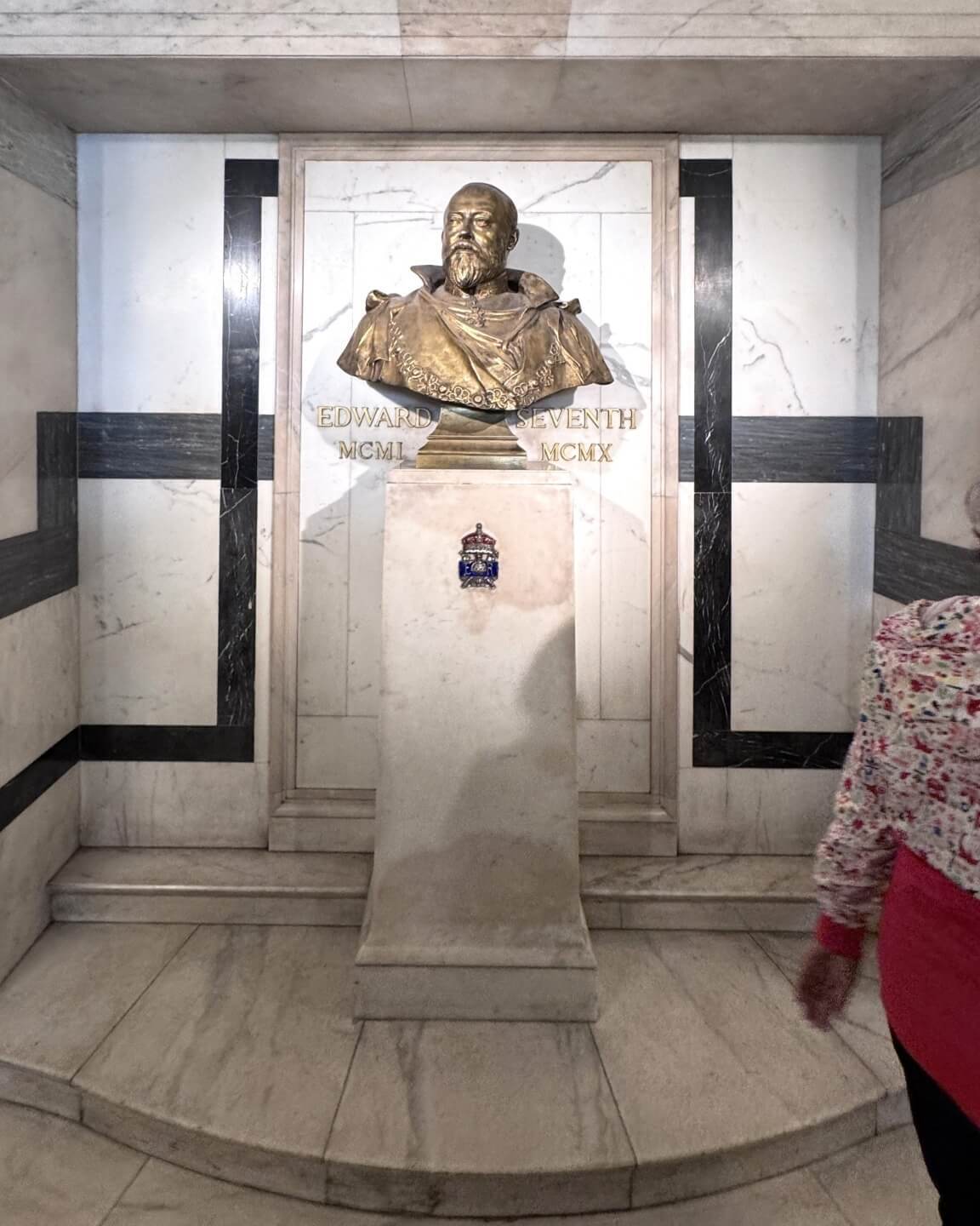 ↓一進到室內,馬上看到這座愛德華七世(Edward VII)的鍍金青銅半身像,愛德華七世曾同時為英國國王及印度帝國的皇帝(1901~10年)。