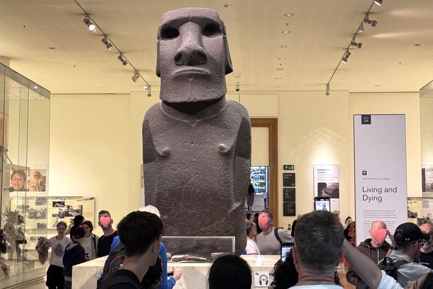↓這裡看到的是來自復活節島(Easter Island)的「摩艾石像Moai」。這座石像有一個特別的名字「Hoa Hakananaia(破浪的朋友或被盜取的朋友)」,它是在1868年被英國軍艦HMS Topaze的船員從復活節島帶走的,呼應了這個特別的名字。