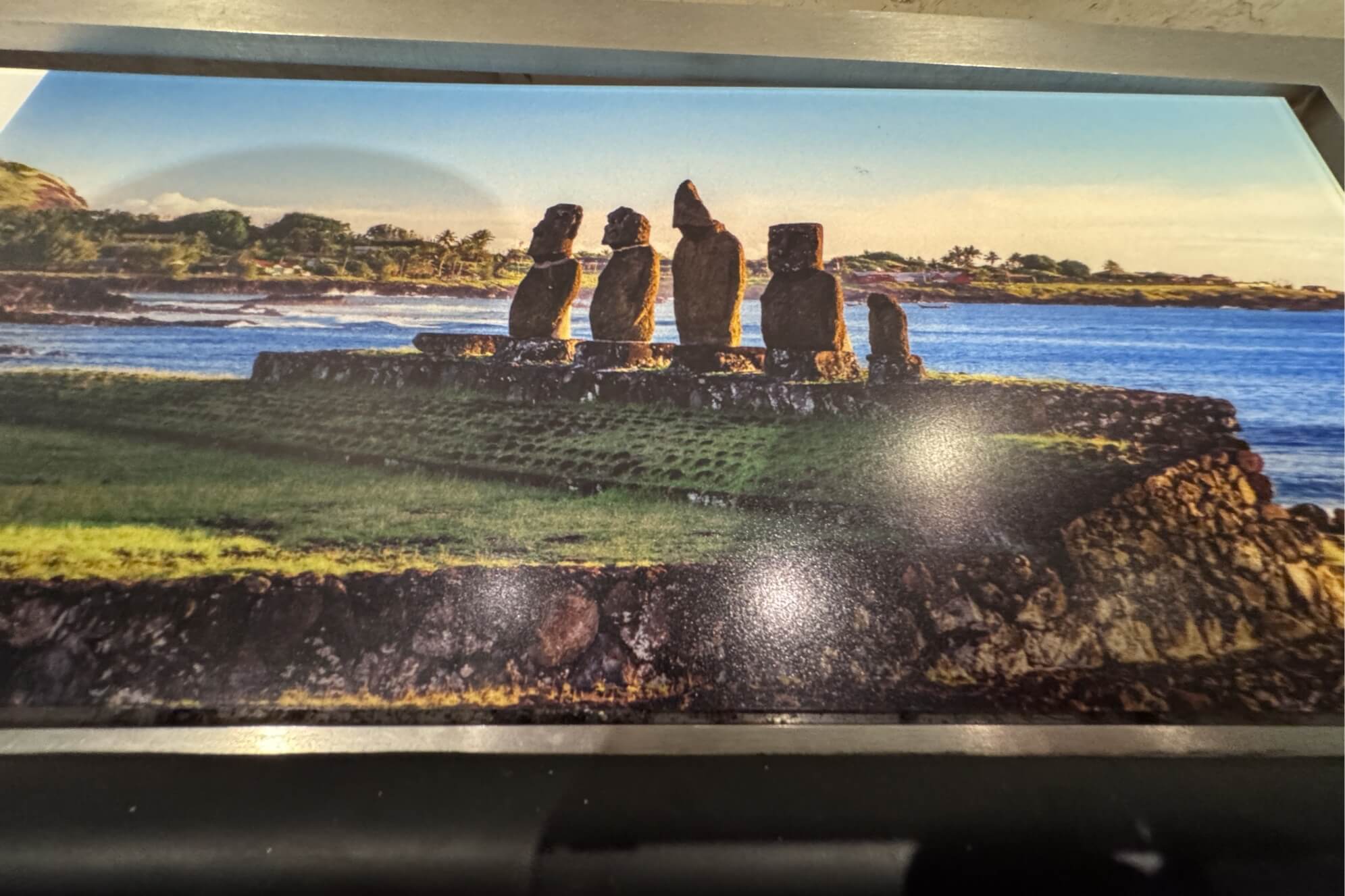 ↓摩艾石像代表著復活節島上拉帕努伊人(Rapa Nui)的祖先,對他們來說具有神聖的意義。這座石像特別之處,在於它背後刻有許多複雜的雕刻圖案,這在其他摩艾石像上並不常見。