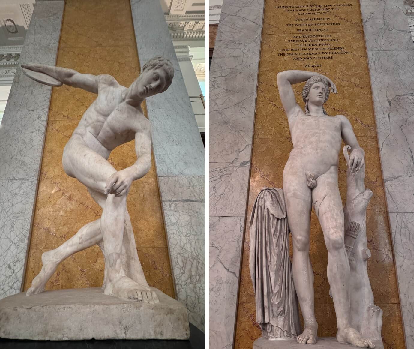 ↓兩座羅馬於公元2世紀所塑的人形雕像,左邊是迪斯科博盧斯(Discobolus),右邊則是阿波羅(Apollo)。