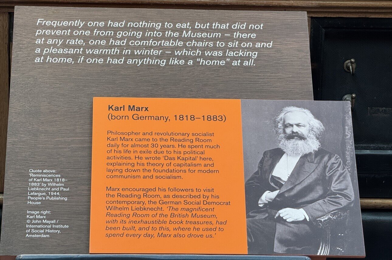 ↓卡爾·馬克思(Karl Marx),德國著名的哲學家、政治理論家與革命社會主義者,其思想被稱為『馬克思主義』,我們讀高中時,三民主義的課本裡,有好多與他相關的主題。他在1850~60年移居倫敦的後期,便幾乎每天都來到閱覽室。