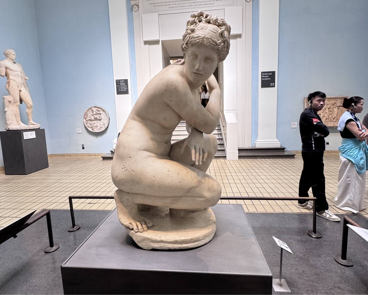 ↓這是古羅馬神話裡的愛神-維納斯(Venus)的雕像,不過是羅馬帝國時期的複製品。作品描述維納斯在洗澡時被偷窺而感到驚訝,試圖用手臂遮住自己的微妙神情。