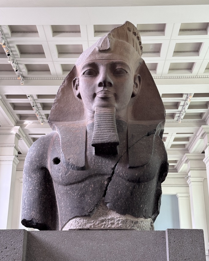 ↓來到大英博物館的另一件鎮館之寶,埃及最著名的法老-國王拉美西斯二世(Ramesses II)的雕像上半部。