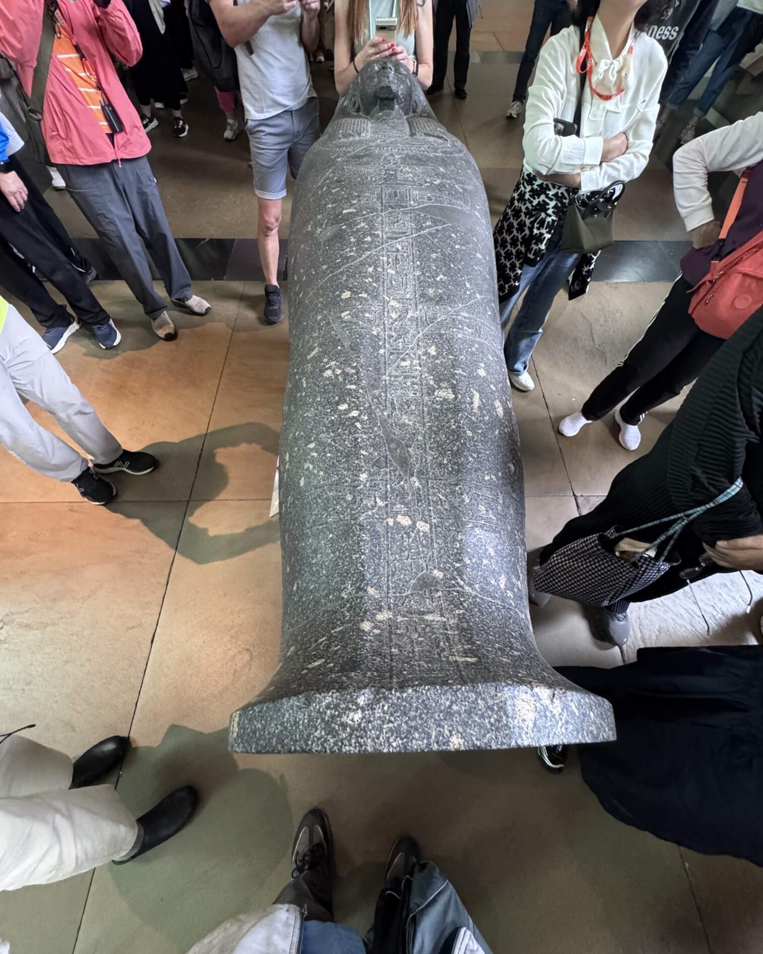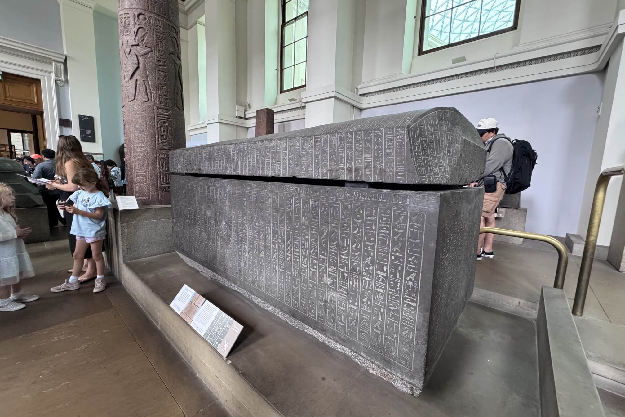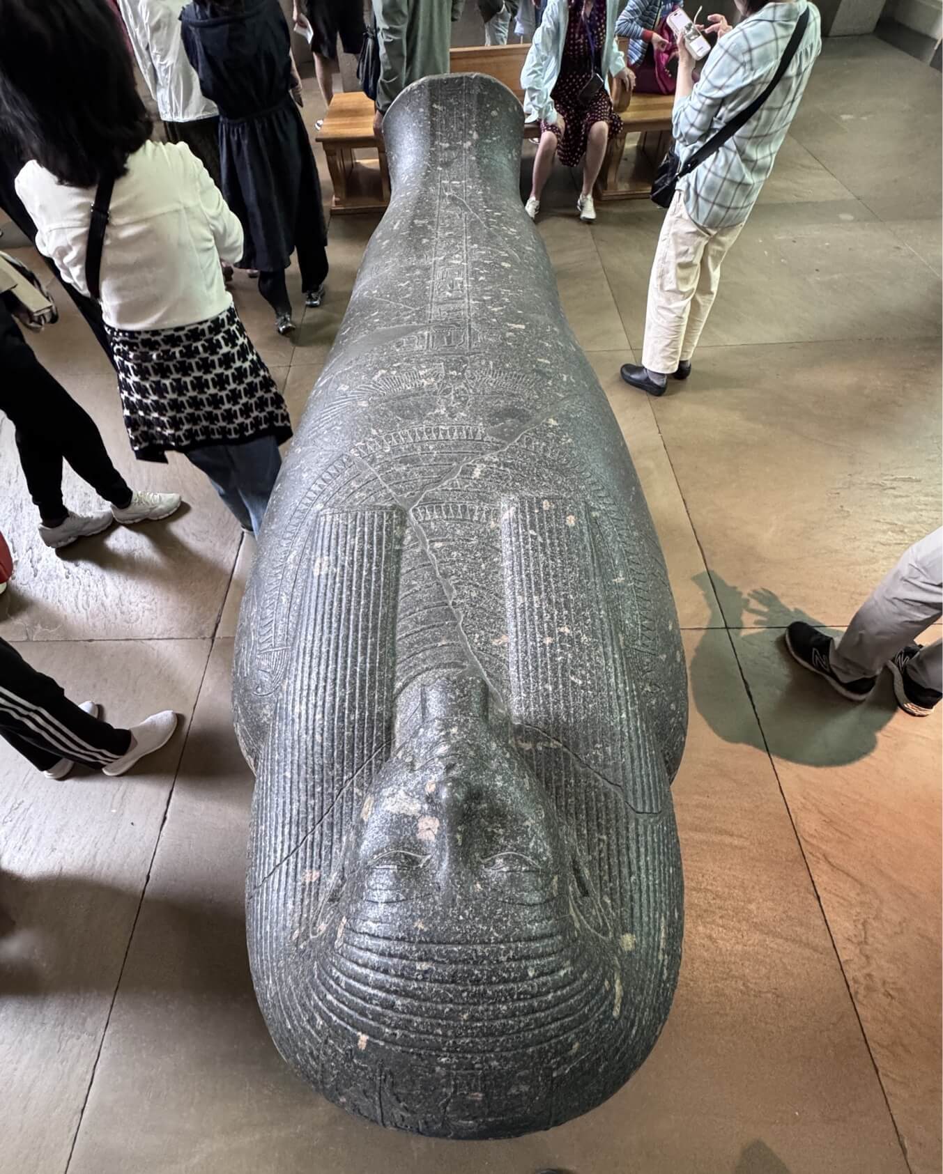 ↓這具黑色花崗岩石棺,是為了埃及最後一位本土法老王-內克塔內布二世(Nectanebo II)雕刻而成。該石棺是晚期埃及雕塑的典範,上面裝飾有象形文字和古埃及《門之書》中的圖像。