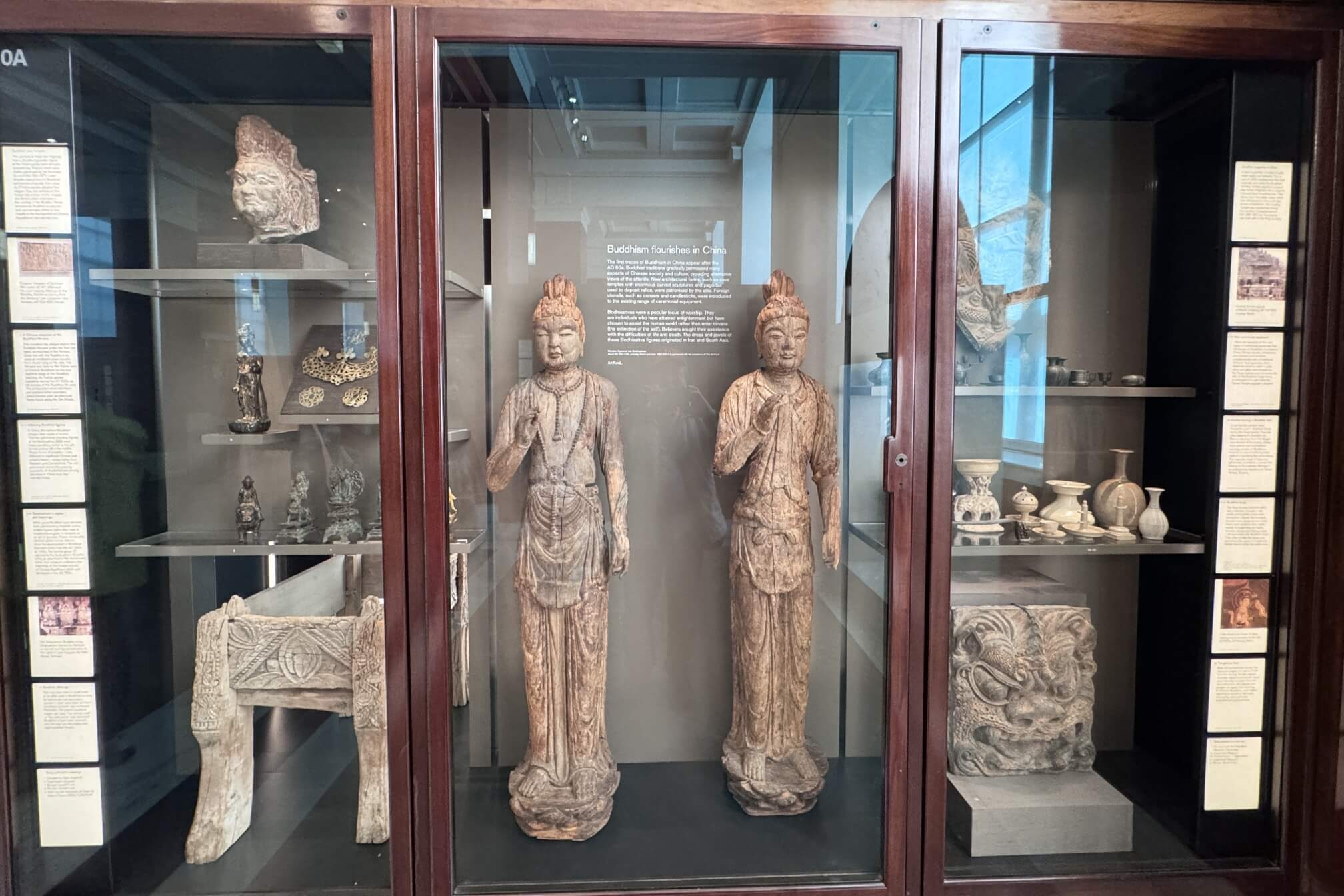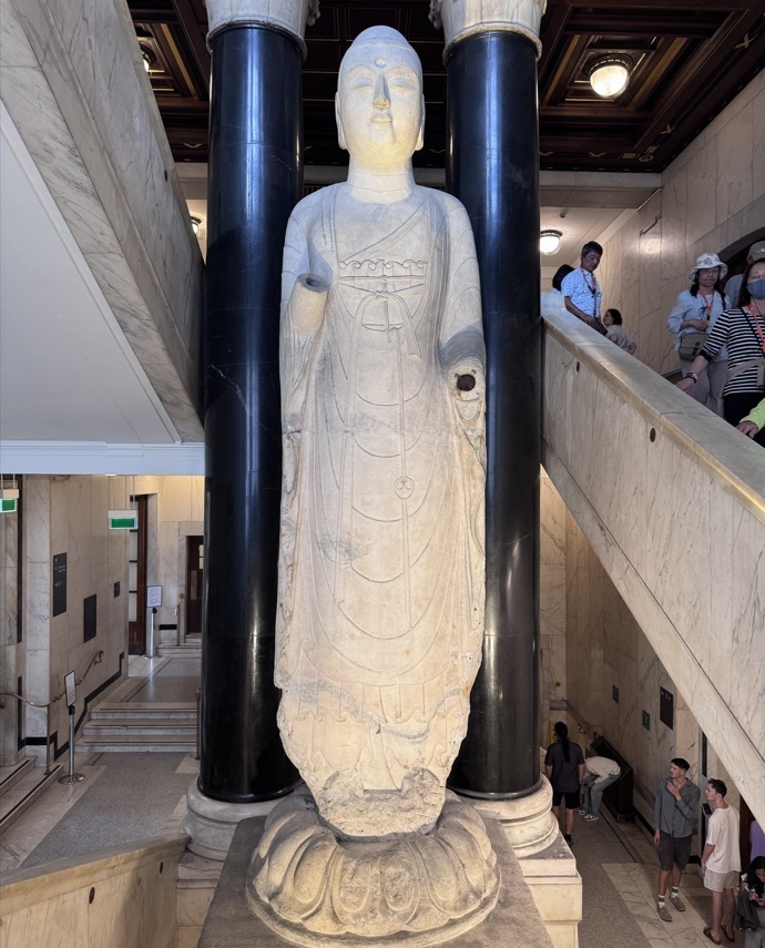 ↓同樣在樓梯間,看到了這尊來自古中國-隋朝(581~618年)的石雕。在歷經多年後,佛像的身體和衣著紋路仍然清晰可見,展現出當時精湛的雕刻工藝,也反映了佛教在隋唐時期於中國的興盛。