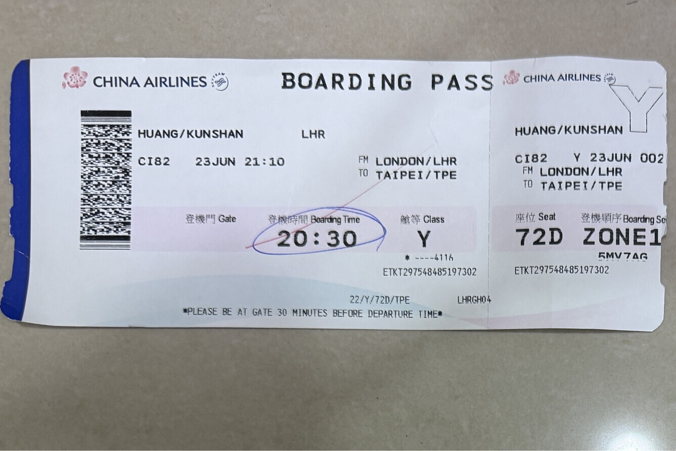 ↓就是搭這班華航班機,我們『英國愛爾蘭全覽16天旅遊』要在這裡告一個段落了,雖然辛苦,卻也收穫滿滿。還有好多個英格蘭、蘇格蘭、愛爾蘭的景點沒有走到,留待下次的機會再來了。