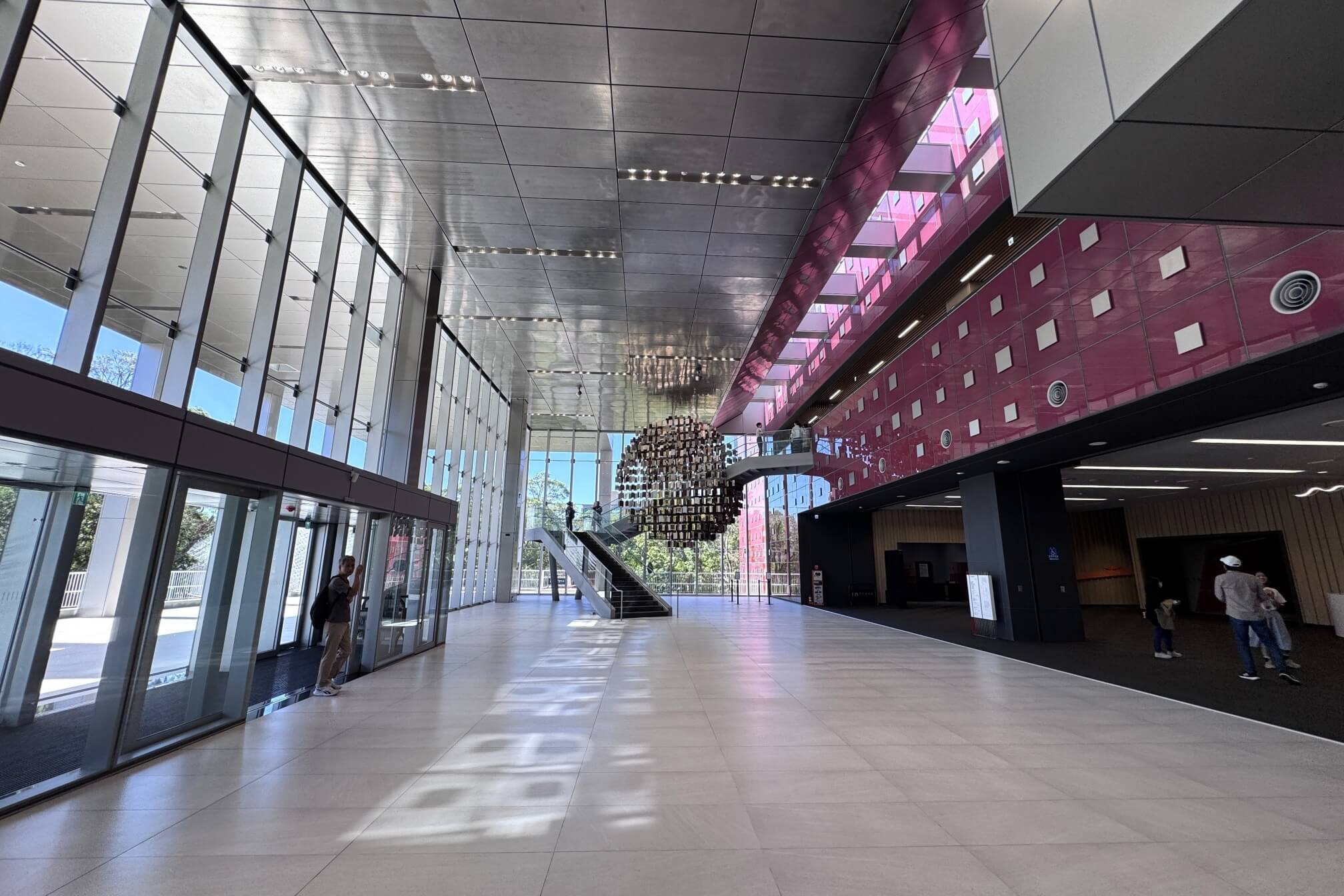 ↓來到二樓大廳,右側是主展廳,前方有一樓梯可上三樓的「國家檔案閱覽中心」,左側則可走到戶外,那邊有一條天空廊道。