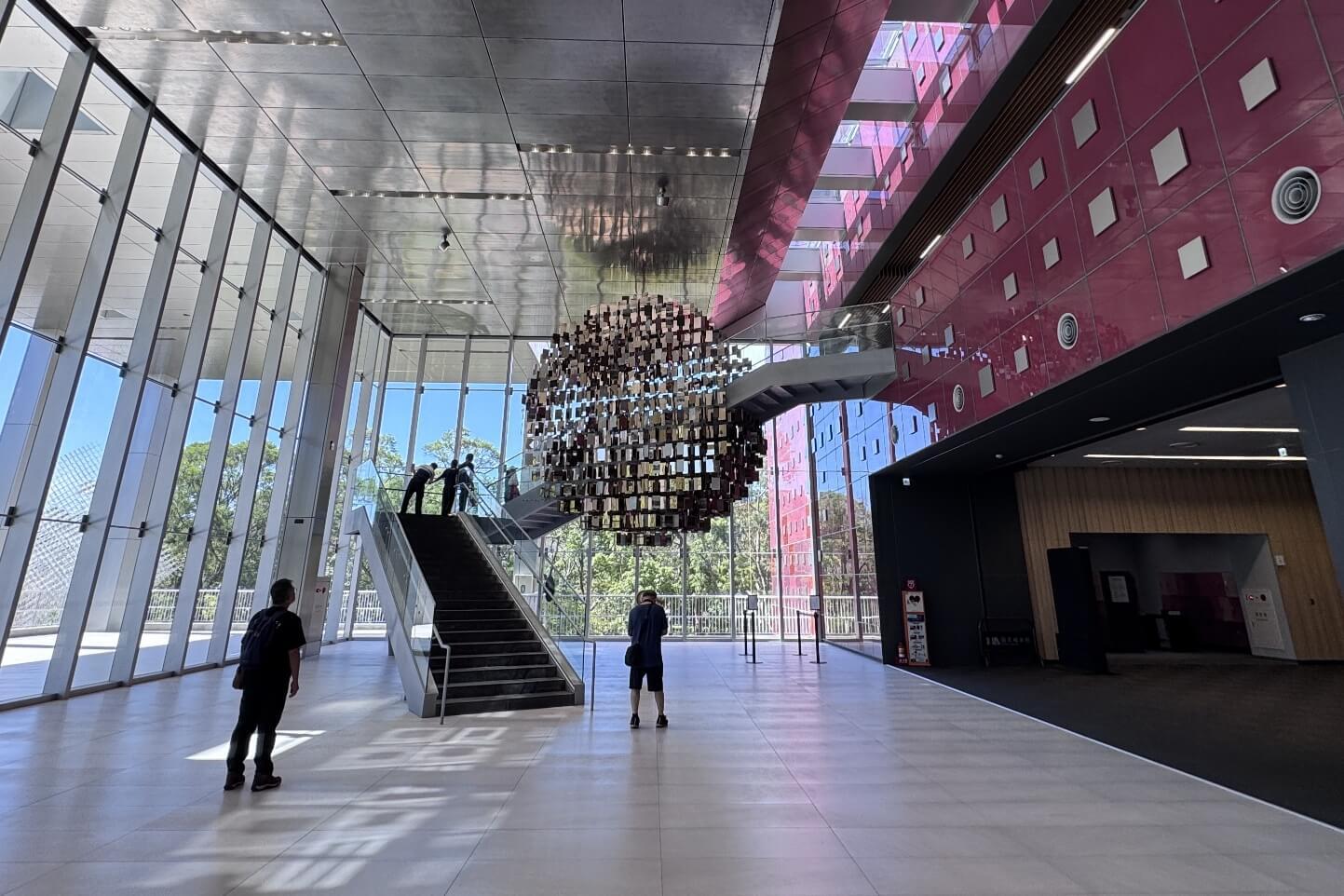 ↓往三樓的樓梯處,有一顆球狀外觀的裝置藝術。