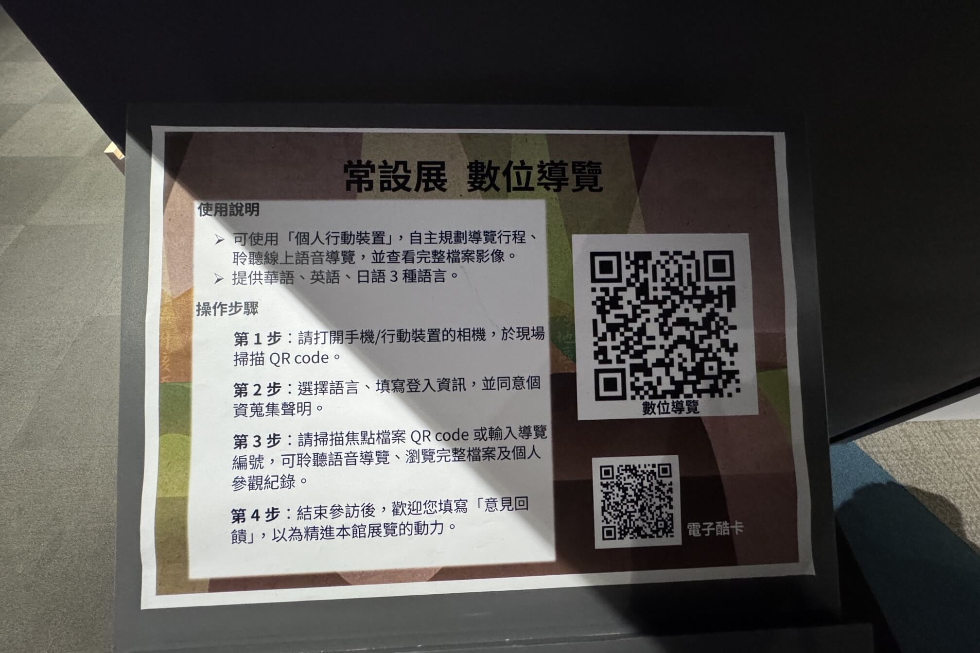 ↓常設展廳有提供數位導覽,遊客可以自行掃描QR-Code,聆聽導覽,導覽提供中文、日文及英文選項。