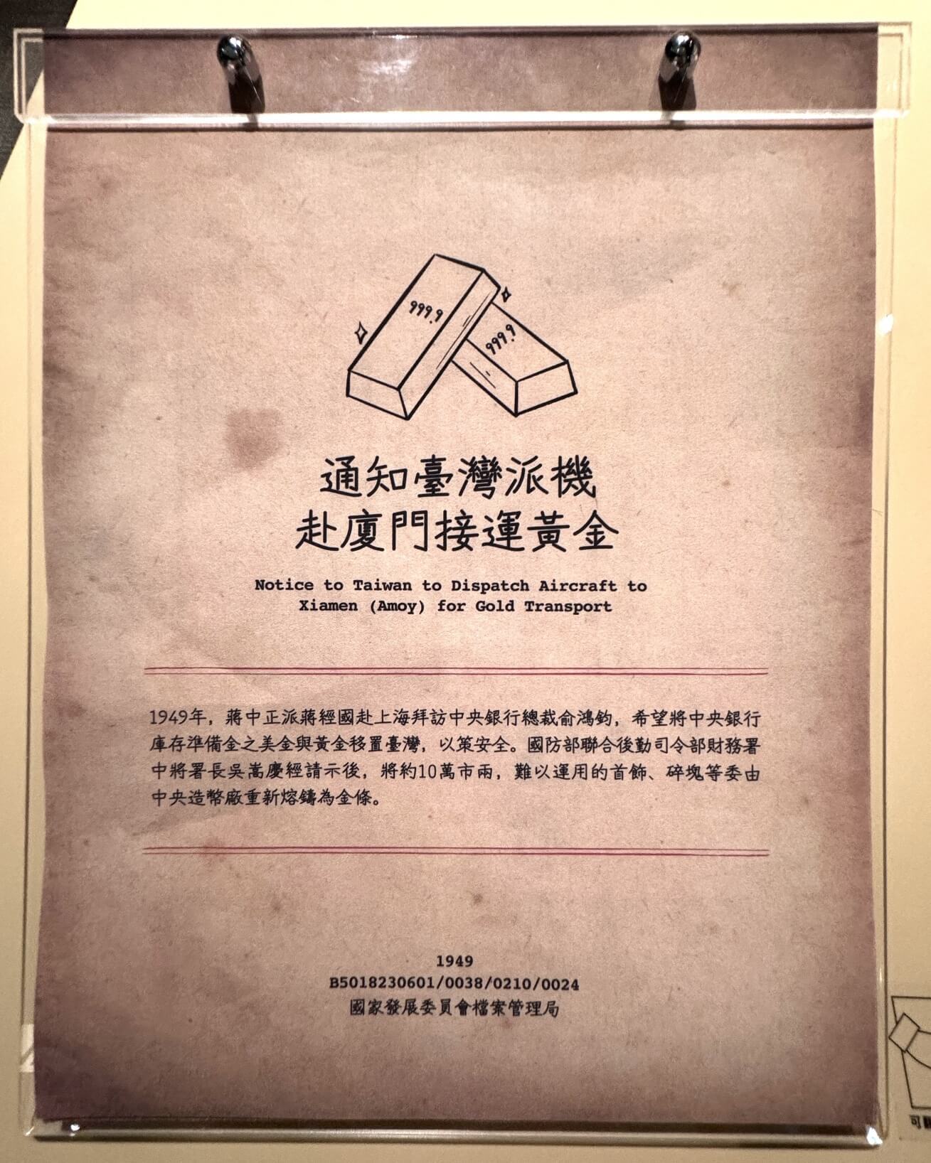 ↓當時還派遣軍機從大陸運送大量的黃金至台灣,除了穩定台灣金融環境,也是日後中華民國外匯存底居高不下的重要關鍵。