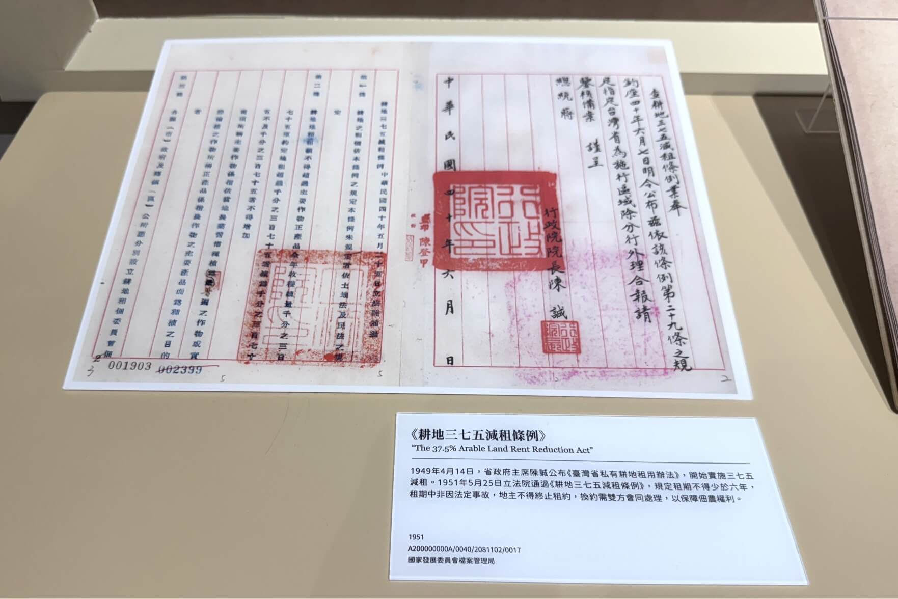 ↓政府遷台後,實施《三七五減租》及《耕者有其田》等政策,奠定了佃農的耕地紀律與保障,形成當時「以農立國」的重要規範。