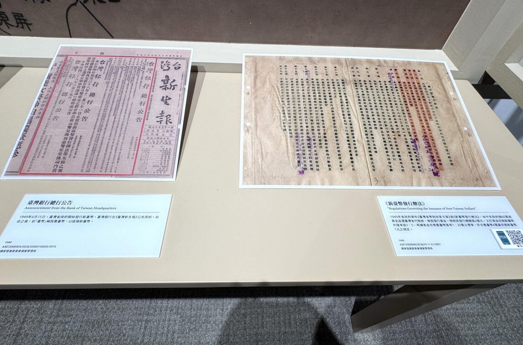 ↓戰後因為通膨嚴重,1949年台灣省政府開始發行新台幣,舊台幣以4萬元換1元的比例換取新台幣,通膨現象也得以趨於穩定。