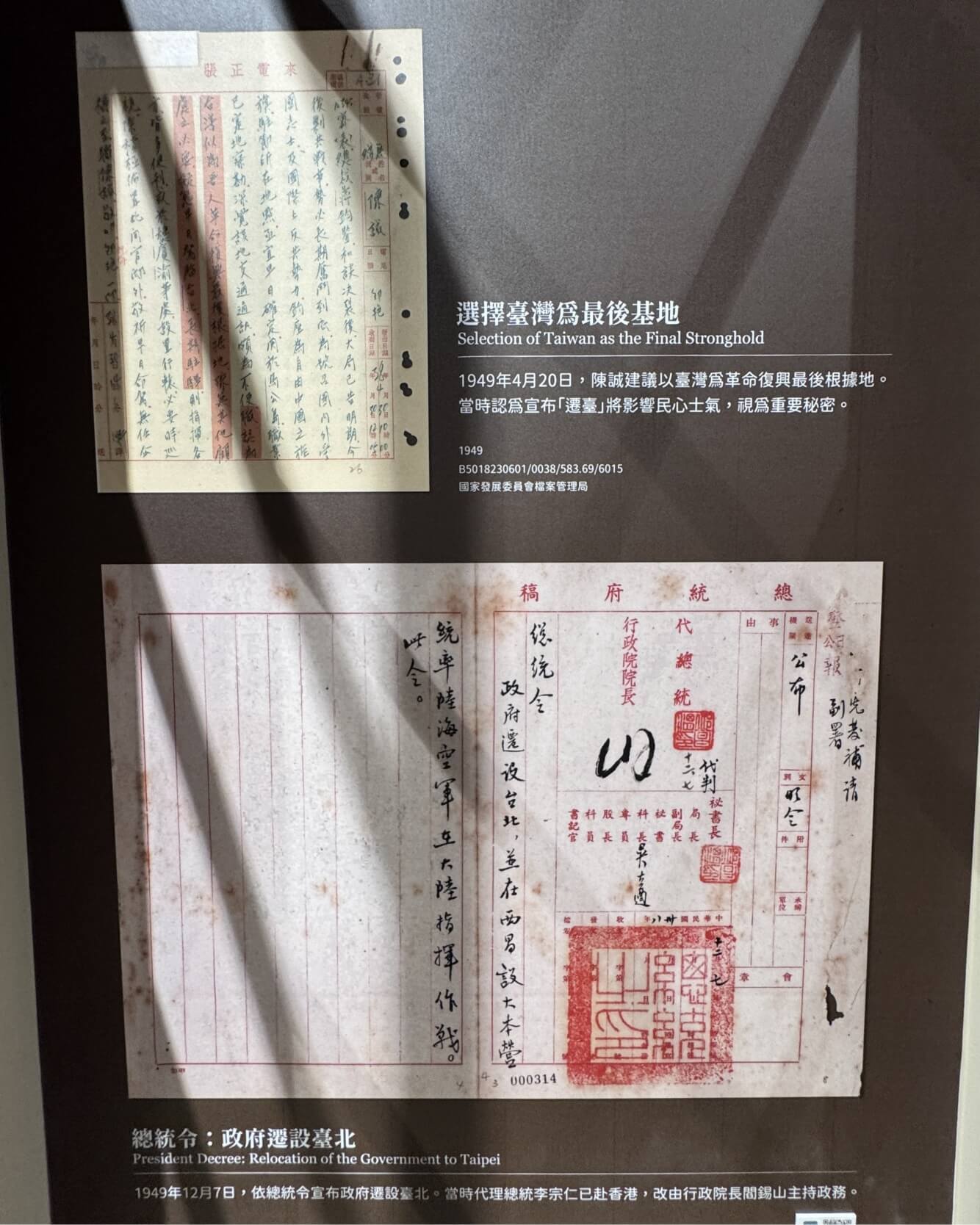↓1949年,國共情勢逆轉,時任台灣省主席的陳誠,建議以台灣為革命復興的最後基地。因當時如果宣布「遷台」,將嚴重影響民心士氣,而被視為重大機密。