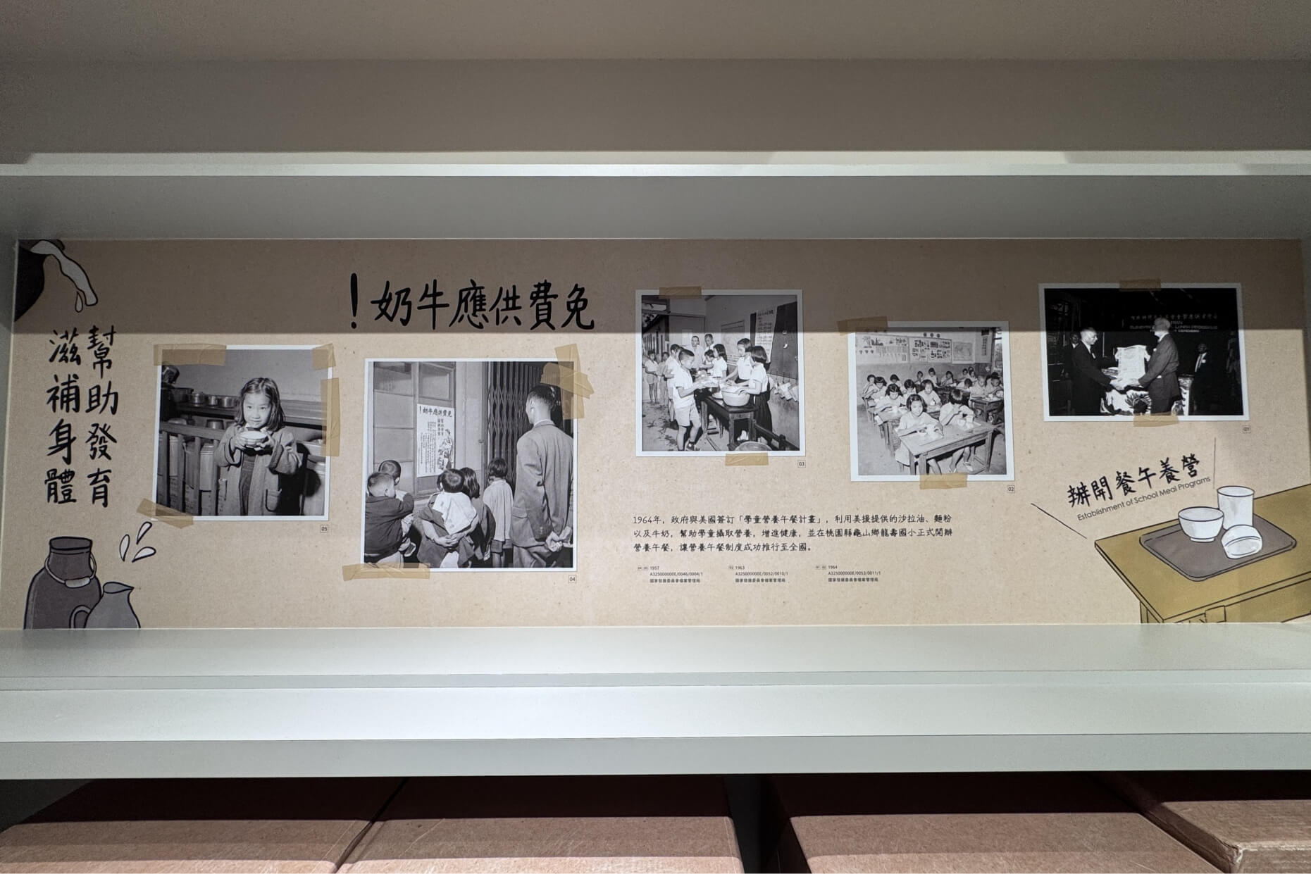 ↓1964年,政府與美國簽訂「學童營養午餐計畫」,利用美援提供的沙拉油、麵粉、牛奶,幫助學童攝取營養、增進健康(當時的中美關係真好!),也才有後來的學生營養午餐制度的建立。