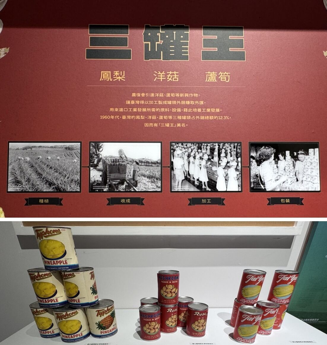 ↓1960年代,台灣農產工業興盛,罐頭外銷成了賺取外匯的利器,而有「三罐王」之稱,鳳梨、洋菇、蘆筍的罐頭,佔了外銷總額的12.3%。