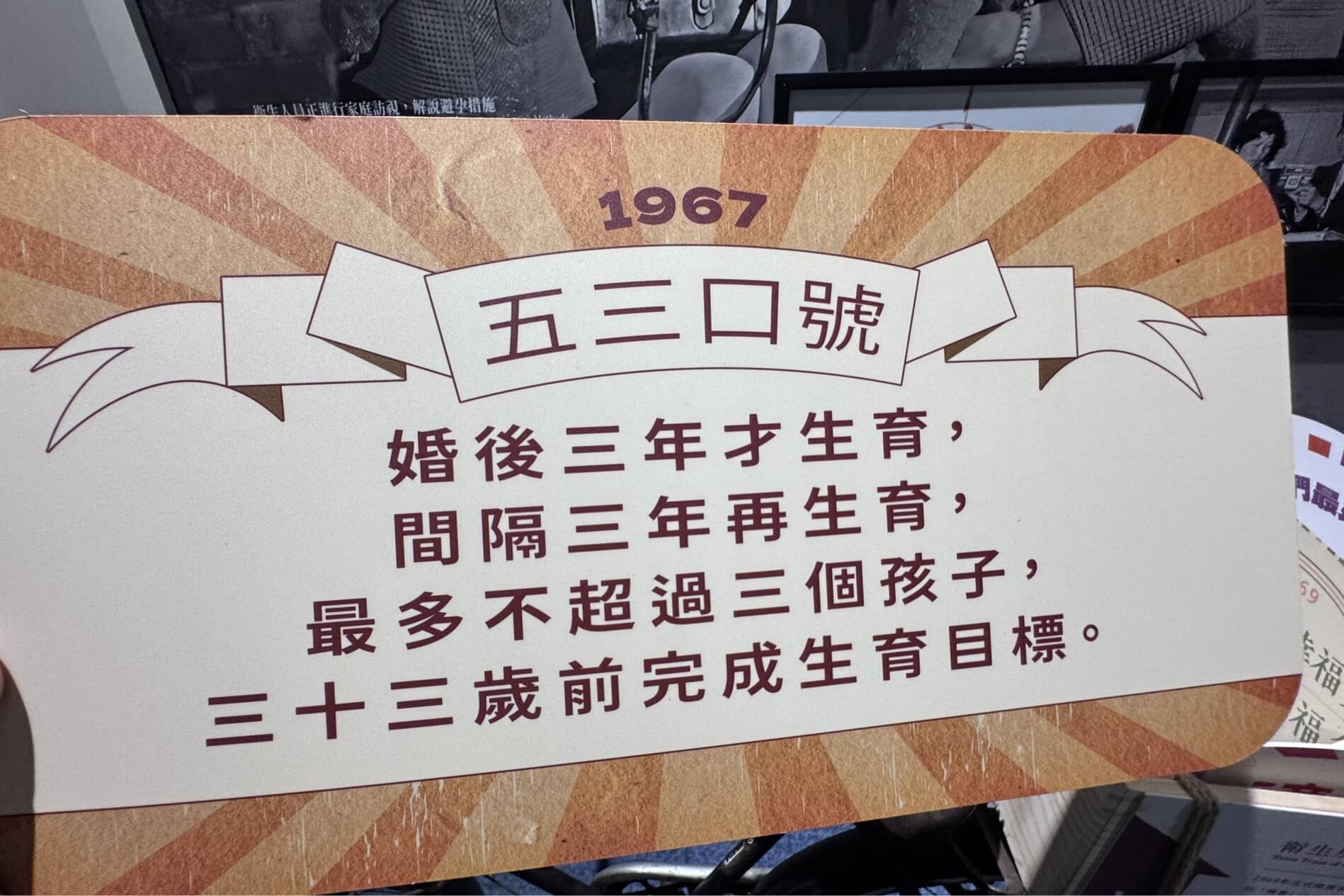 ↓過去有「三三三」口號,「婚後三年才生育,間隔三年再生育,最多不超過三個孩子」,後來又加了「三十三歲前完成生育目標」,而有「五三」口號。