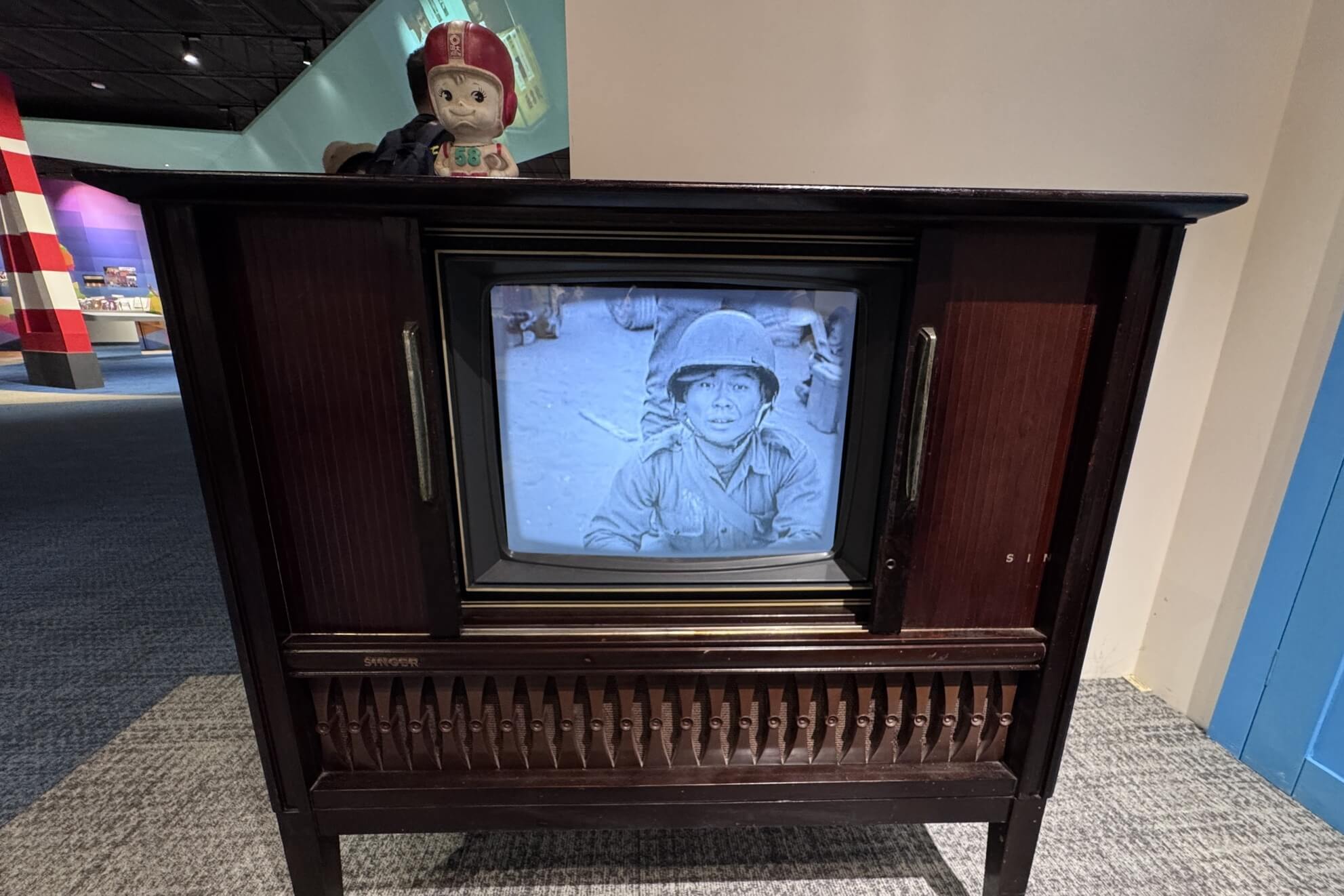 ↓早年的電視機,是這種一大座很佔空間而且有門的機器,夠復古的。電視機上的大同寶寶,是幾十年前的吉祥物。