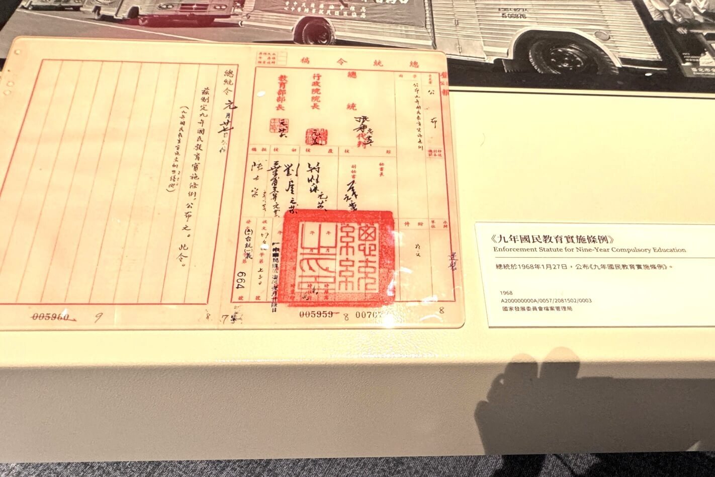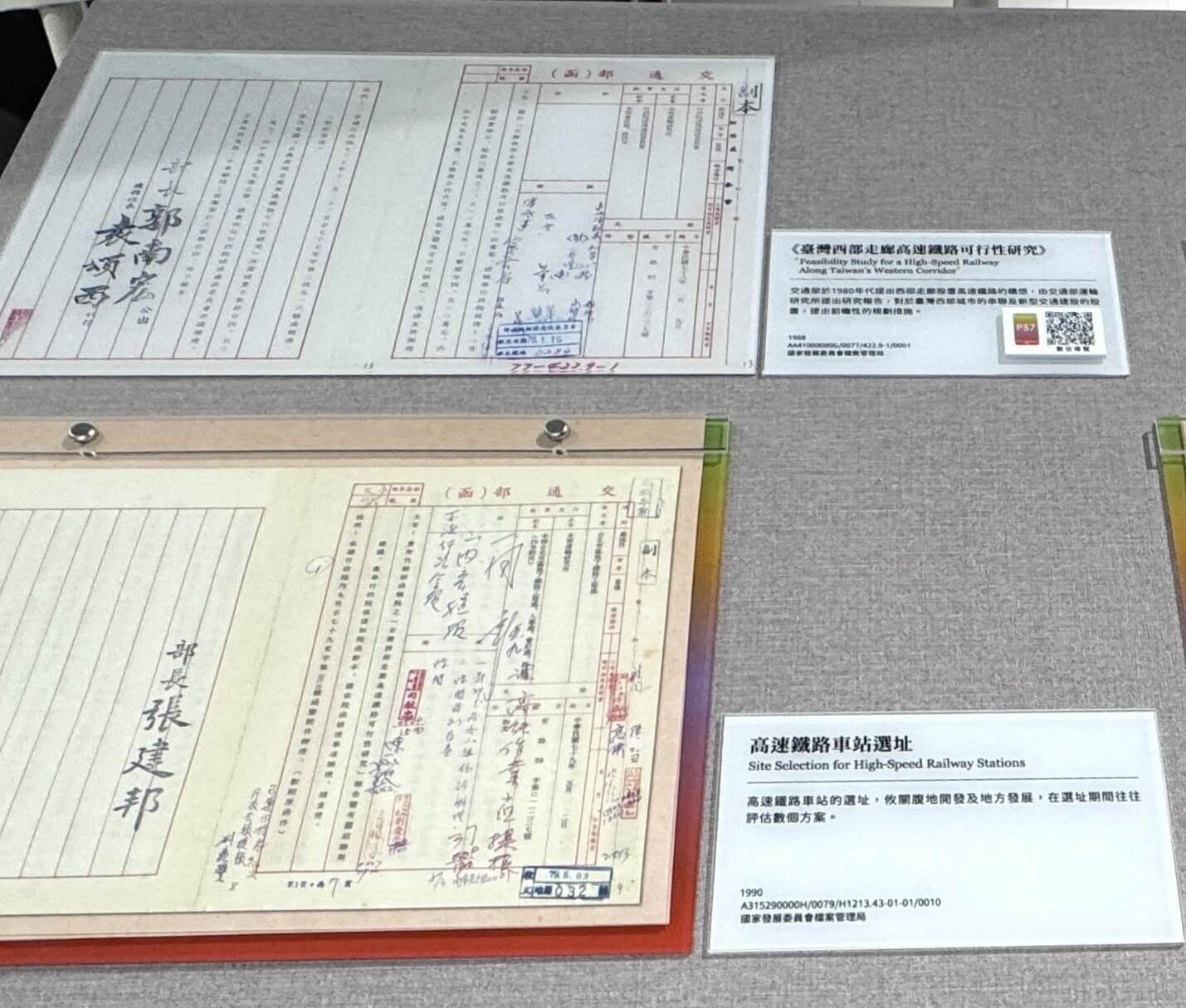 ↓在還不是數位的年代,所有的文件幾乎都是以紙本處理及貯存,展示櫃內有許多過去公告、發行的公文、規範等文件,已陸續被數位化,存入國家檔案館中,而成為歷史的記憶。
