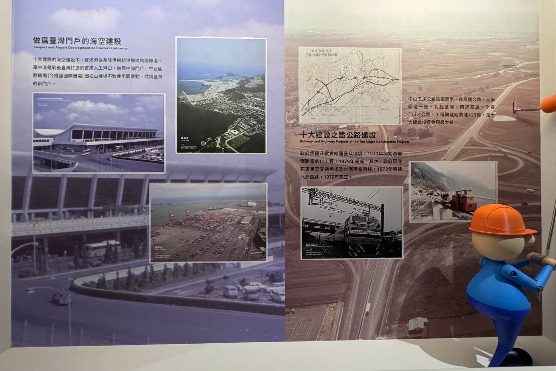 ↓1970年代,台灣經濟起飛、台灣錢淹腳目,推行『十大建設』是關鍵的決定,海陸空重要建設齊發,包含:高速公路、核能發電廠、鐵路電氣化、國際機場、國際商港等。