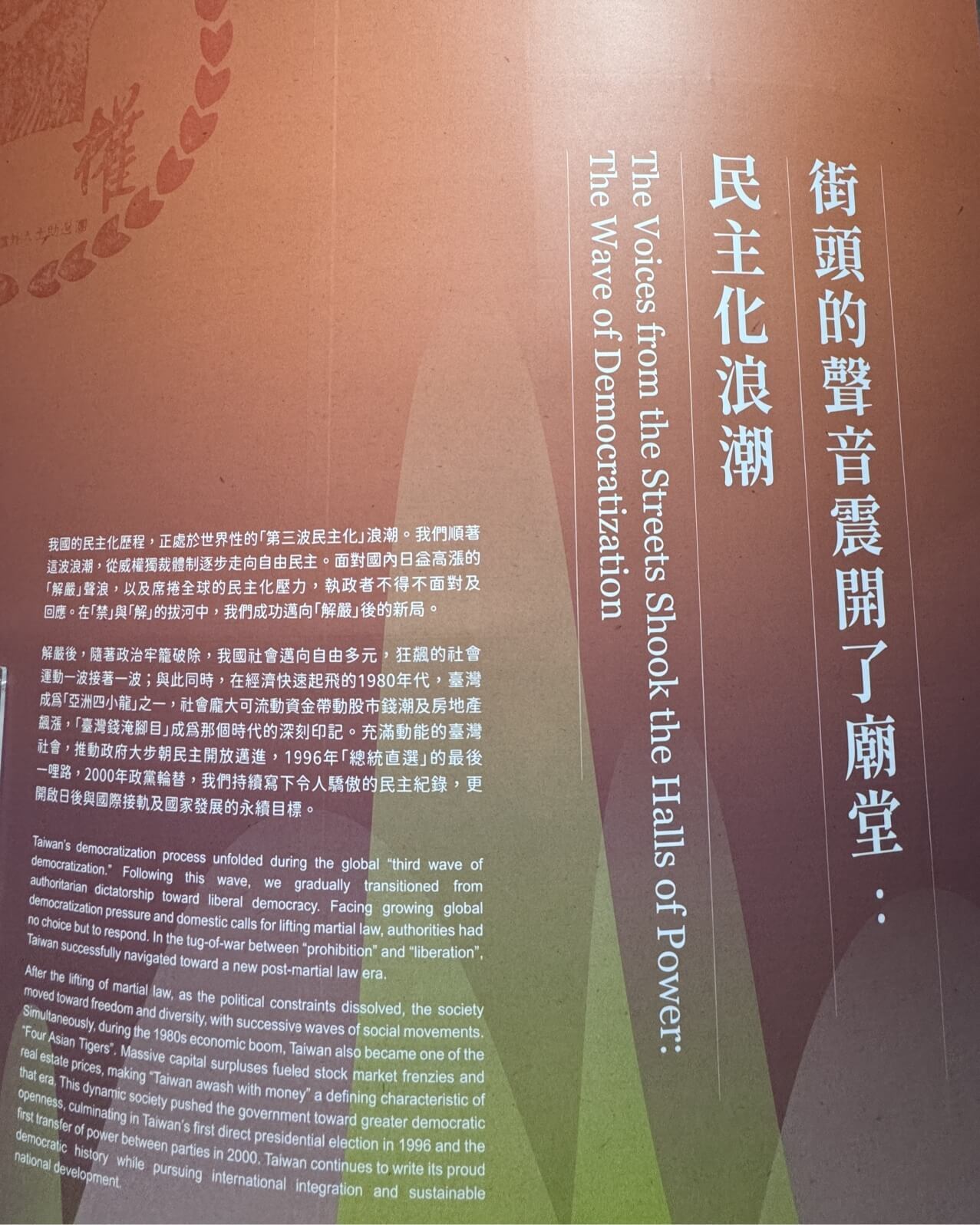 ↓我國雖於1949年開始實施戒嚴,隨著與世界接軌,民主化的浪潮,一波接著一波,最終寫下了令人驕傲的一頁。