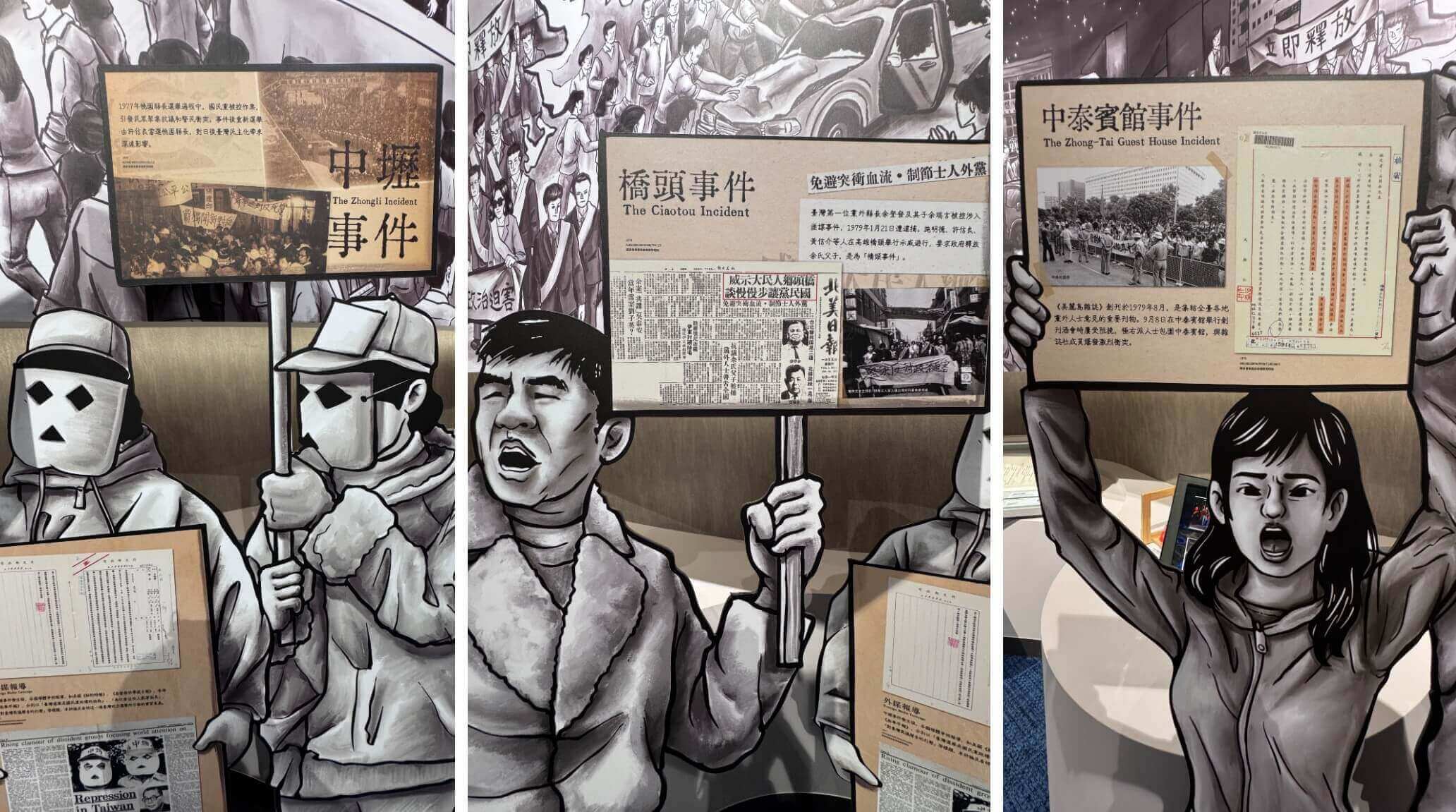 ↓接著來到「特展廳」,是不定期展出不同主題的展廳,目前展出的是「重返1987」。1987年有什麼特別的?原來,這一年我國宣布解除長達38年的戒嚴。