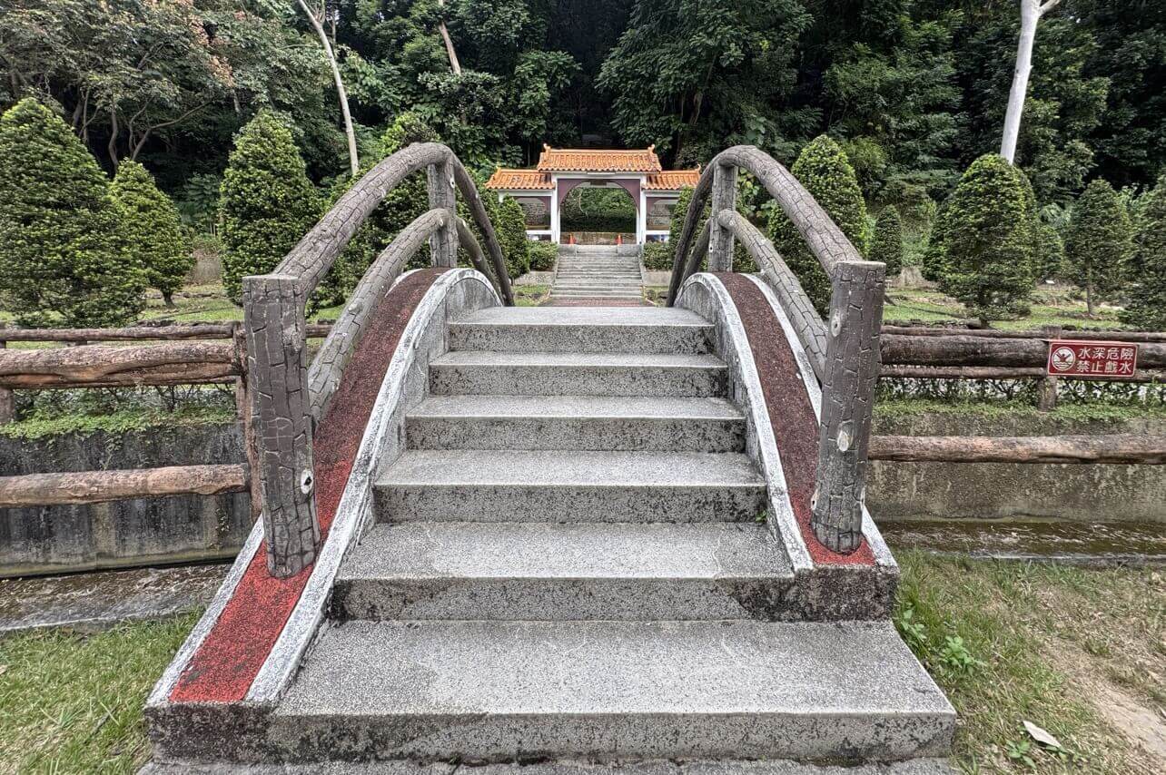 ↓梅園內有一條「霧峰圳」,這座小橋跨過霧峰圳。霧峰圳舊稱「阿罩霧圳」,建於道光18年(1838年),用於灌溉霧峰地區的農田,曾是「阿罩霧第一圳」。