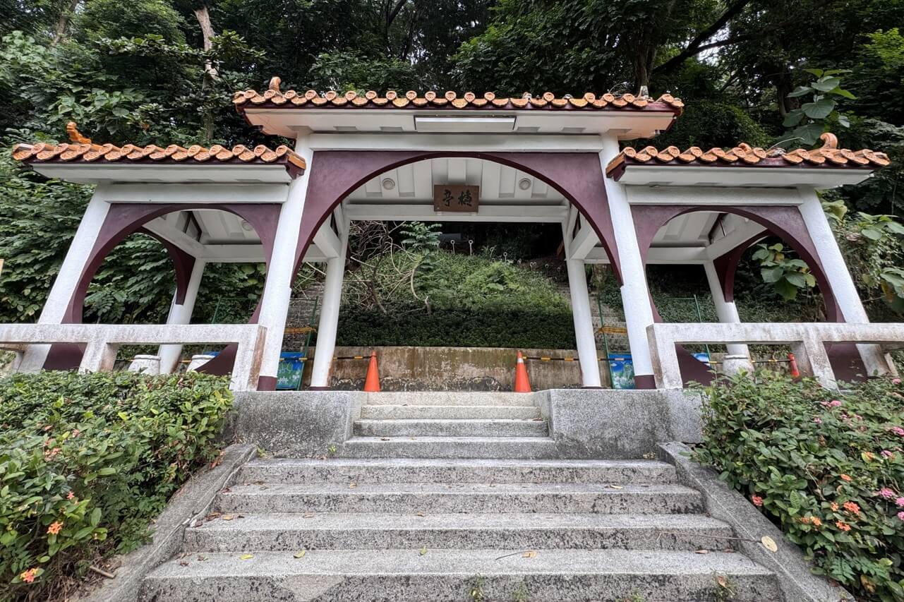 ↓梅園的最高處有一座「梅亭」,旁邊「中心瓏登山步道」的登山步道入口被封起來了,不知道原因,也不知道封到何時為止。
