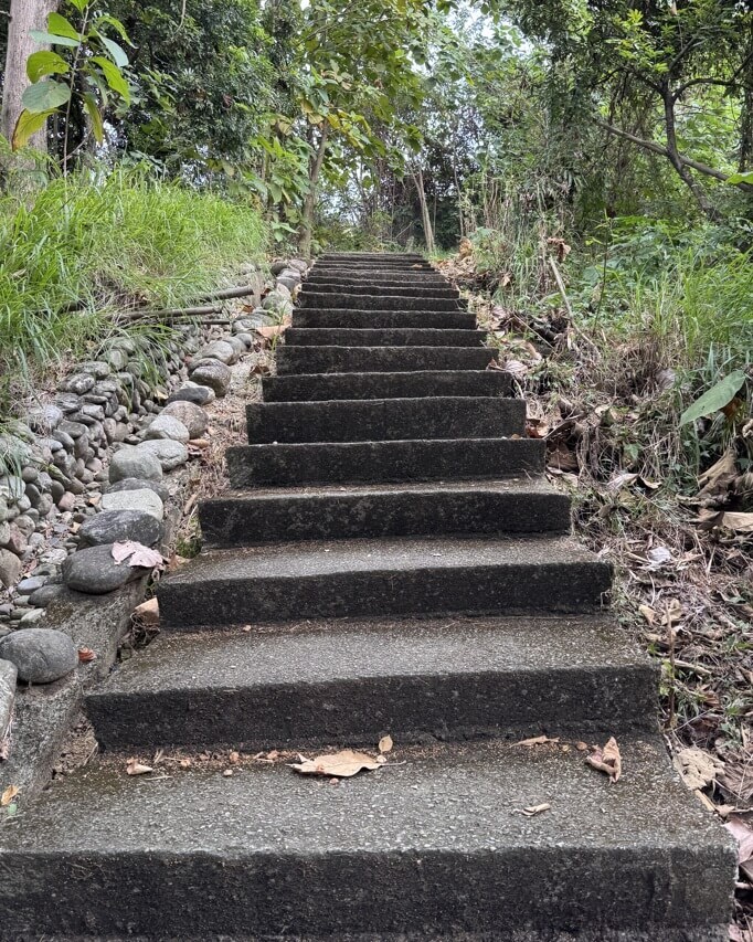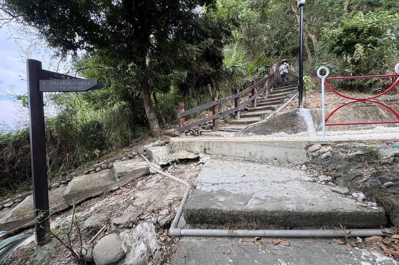↓原本的梅園登山入口進去,步道較長、較蜿蜒,不過相較平緩;而我們現在走的停車場旁的登山入口,一開始就是較陡的爬升步道,還好步道相對較短。