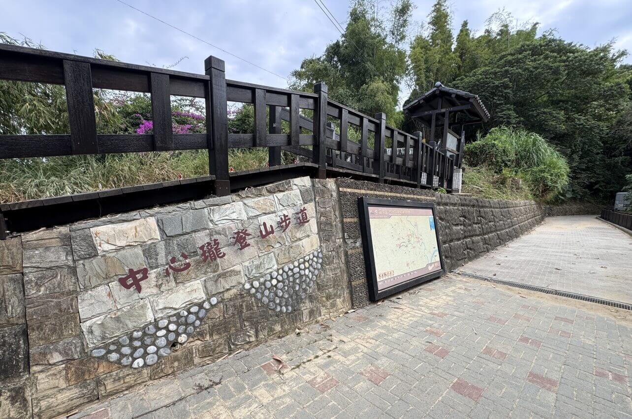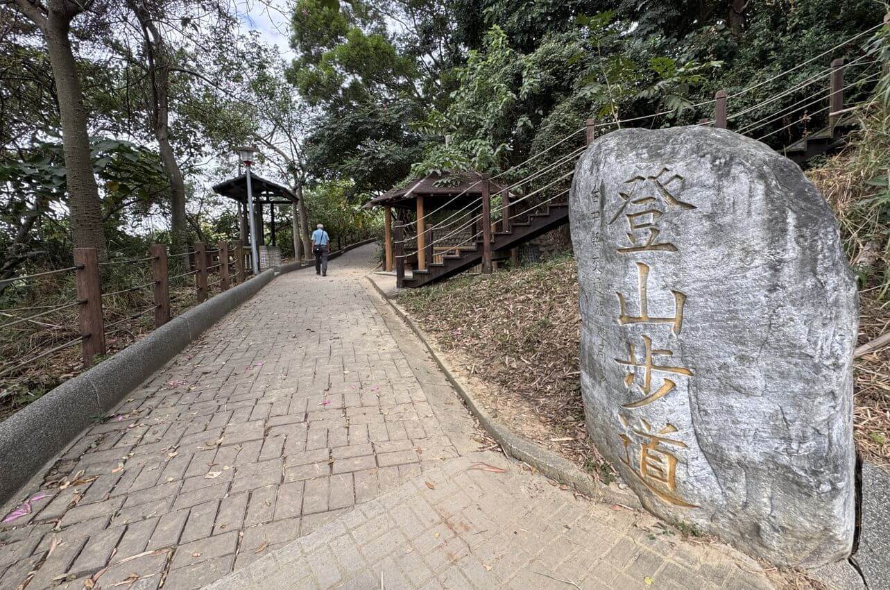 ↓中心瓏登山步道的入口,在立法院民主議政園區的後側。園區內有不少樹木,是過去台灣省議會時期的議員們所植栽,都掛有議員的姓名。