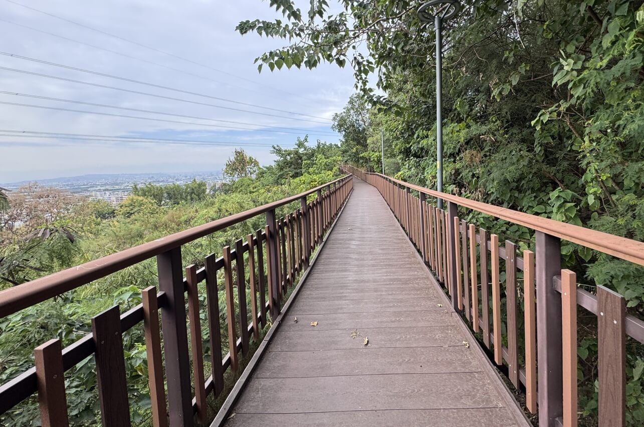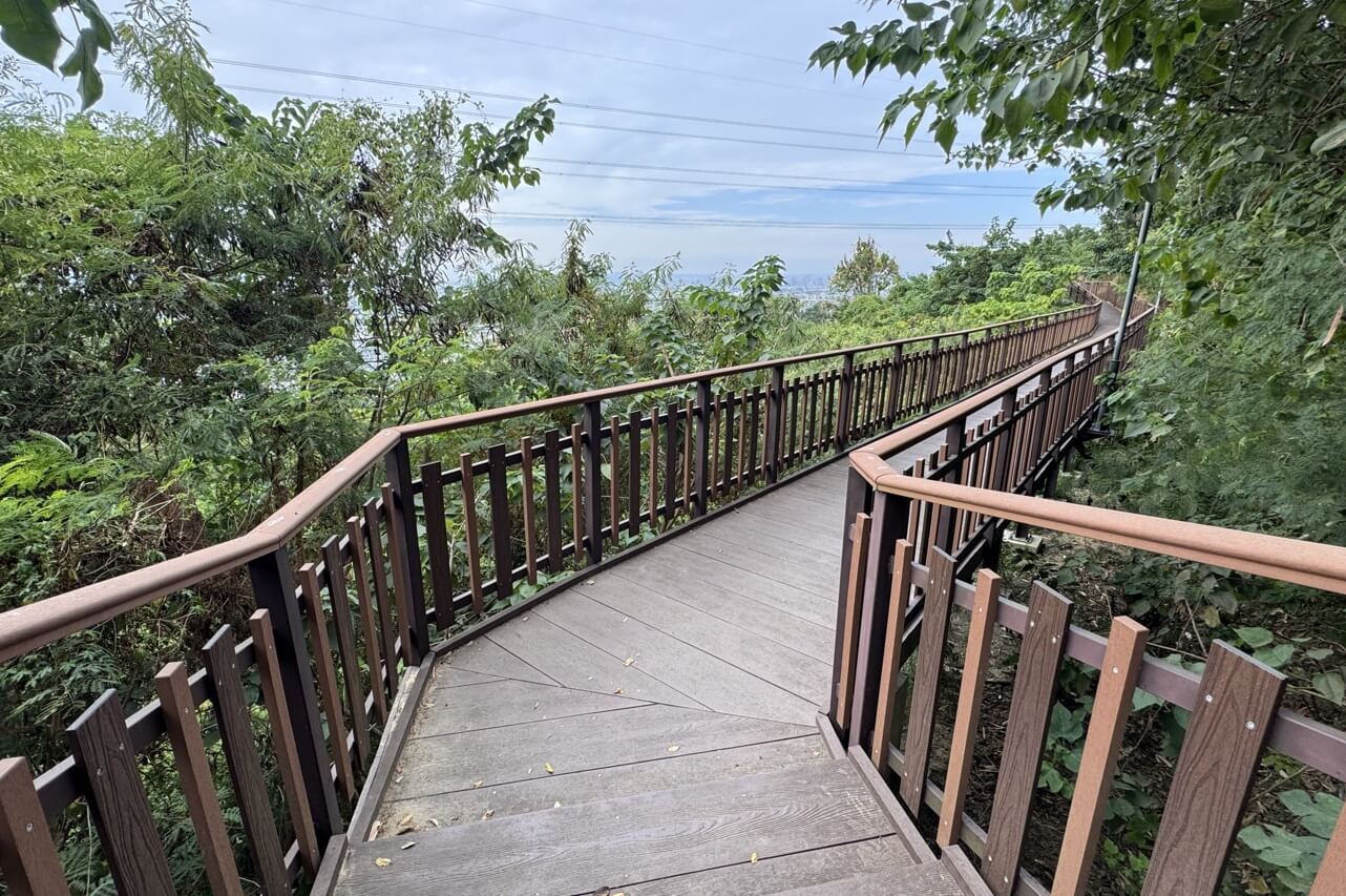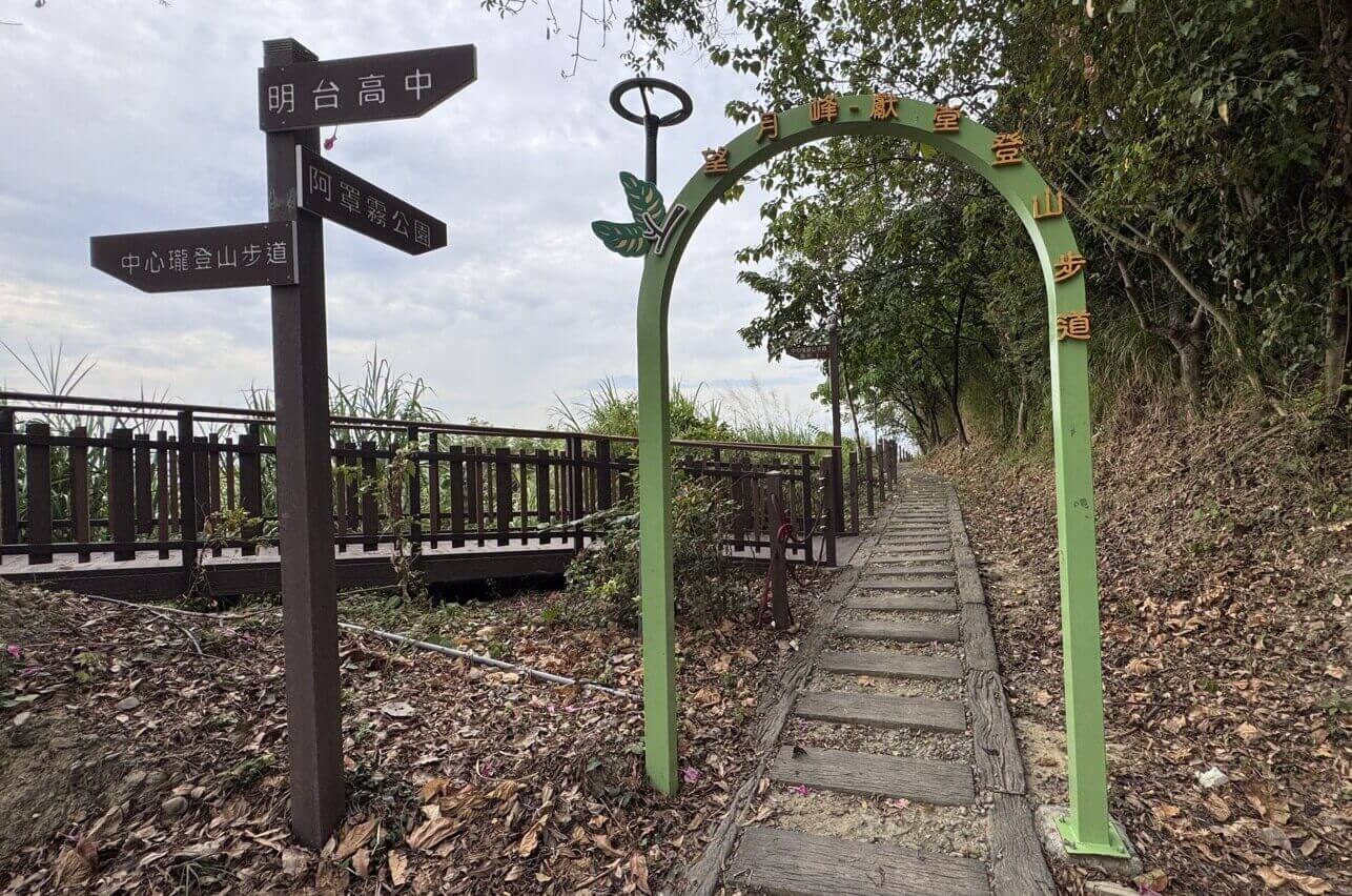 ↓這裡是三叉路口,另一邊是可往「阿罩霧公園」的「望月峰獻堂登山步道」,那一頭可從霧峰林家「萊園」旁的登山入口,往上爬到這裡。
