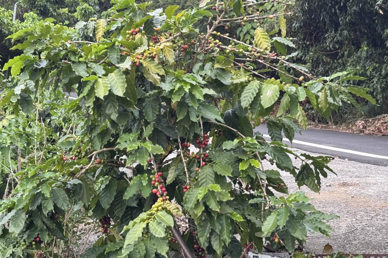 ↓還看到紅綠夾雜的咖啡果,不過咖啡樹沒多少棵,不知道夠不夠量產?
