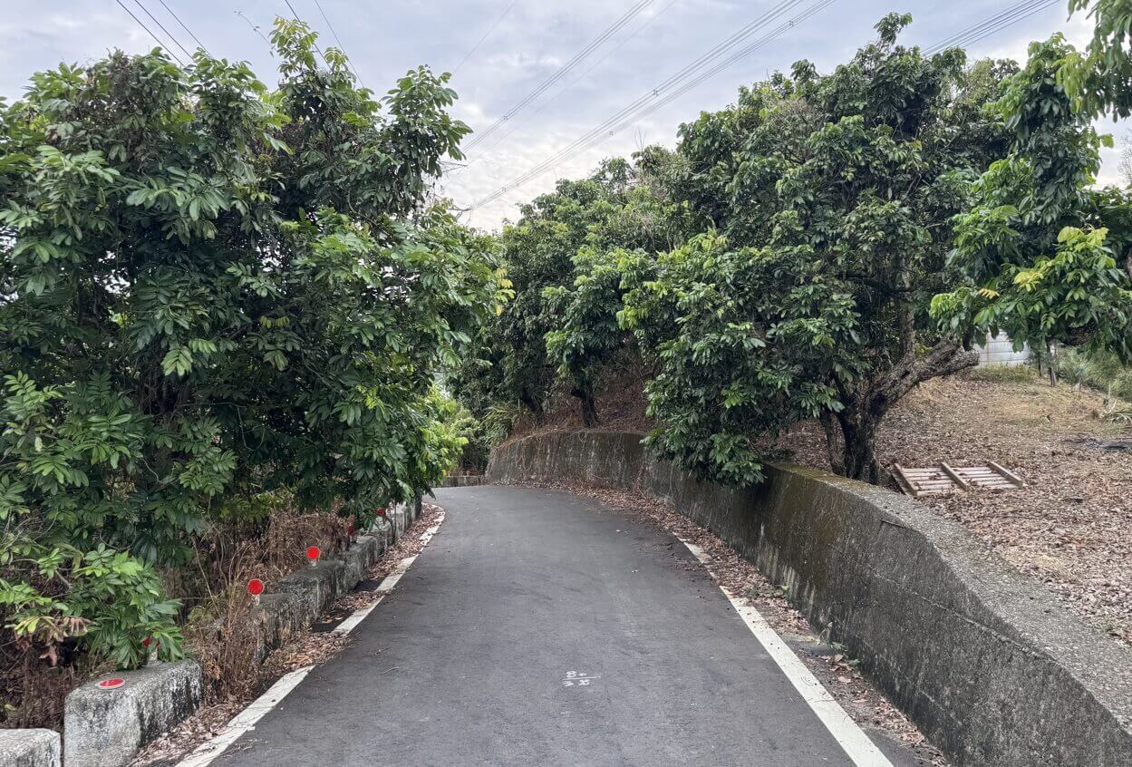 ↓前面道路兩側,一整排的龍眼樹,如果產季來,應該會很壯觀。龍眼產季已過,樹上只剩高處有零星的龍眼殘果,倒是地上落果一堆。對了,『誠實小站』也有賣龍眼乾,應該就是產自此處。