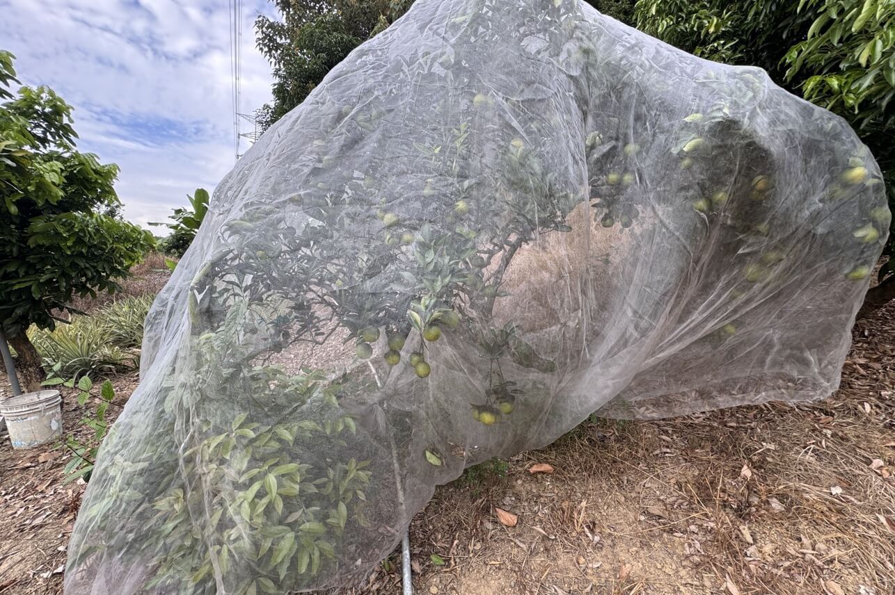 ↓經過一處柑橘、柳丁園,正是產季,結實累累。柳丁以網子套住,可以避免鳥蟲叮咬,可保賣相。