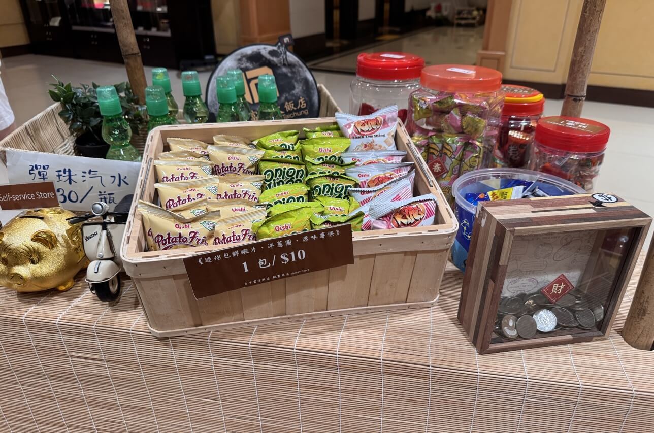 ↓誠實商店販售的都是食物,小餅乾、零食為主,還有彈珠汽水,也是讓住宿客自行拿取食物並且投錢。