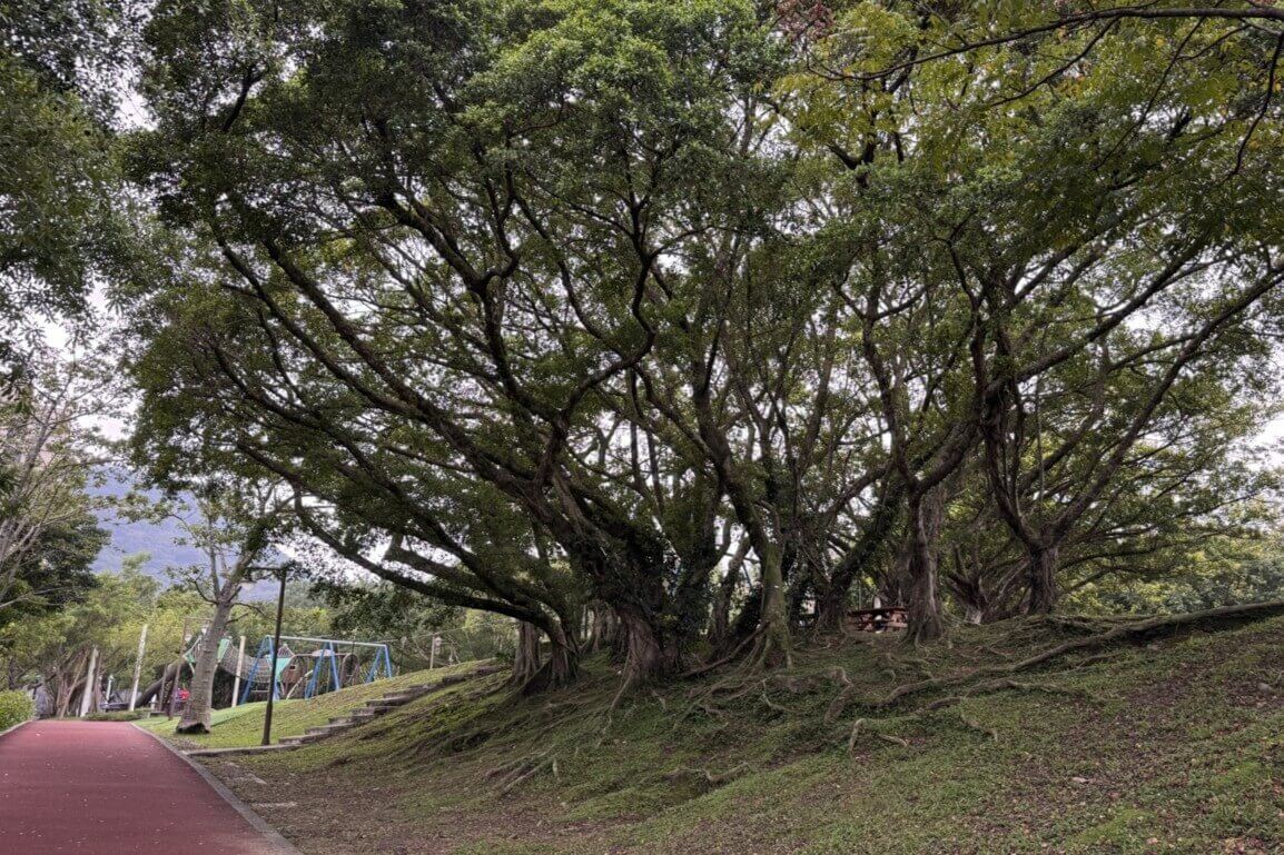↓公園裡植栽種類多樣,眼前是大榕樹。