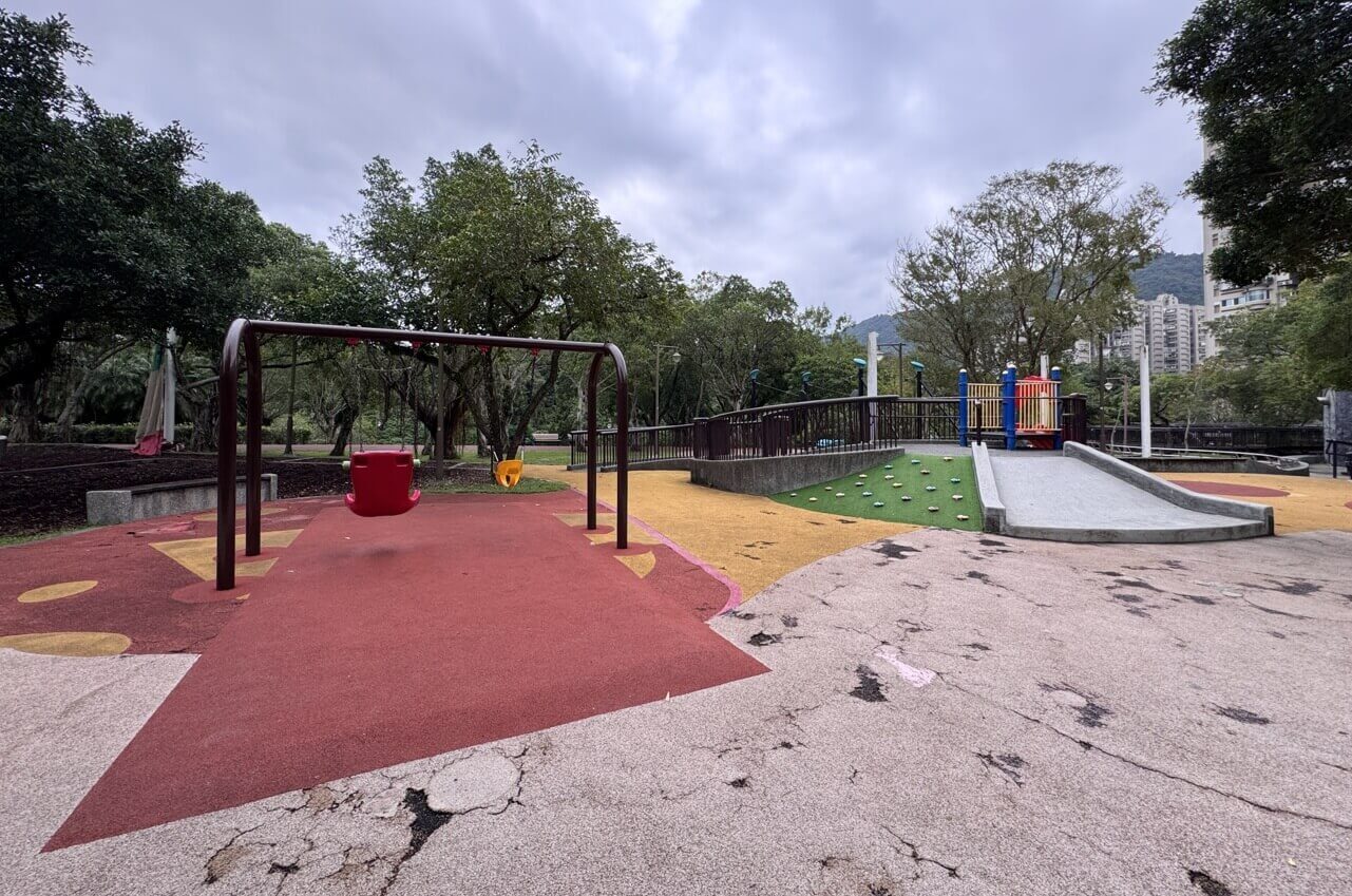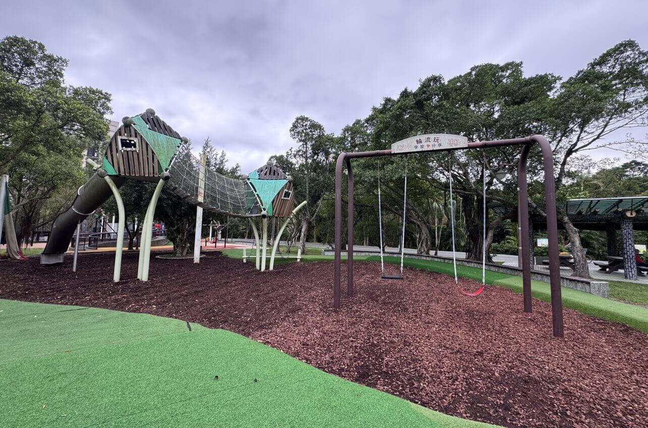 ↓後半段,有好幾區的兒童遊戲場,安全設施都做得很好。今天是平日,只有偶爾看到大人帶著嬰幼兒玩耍。