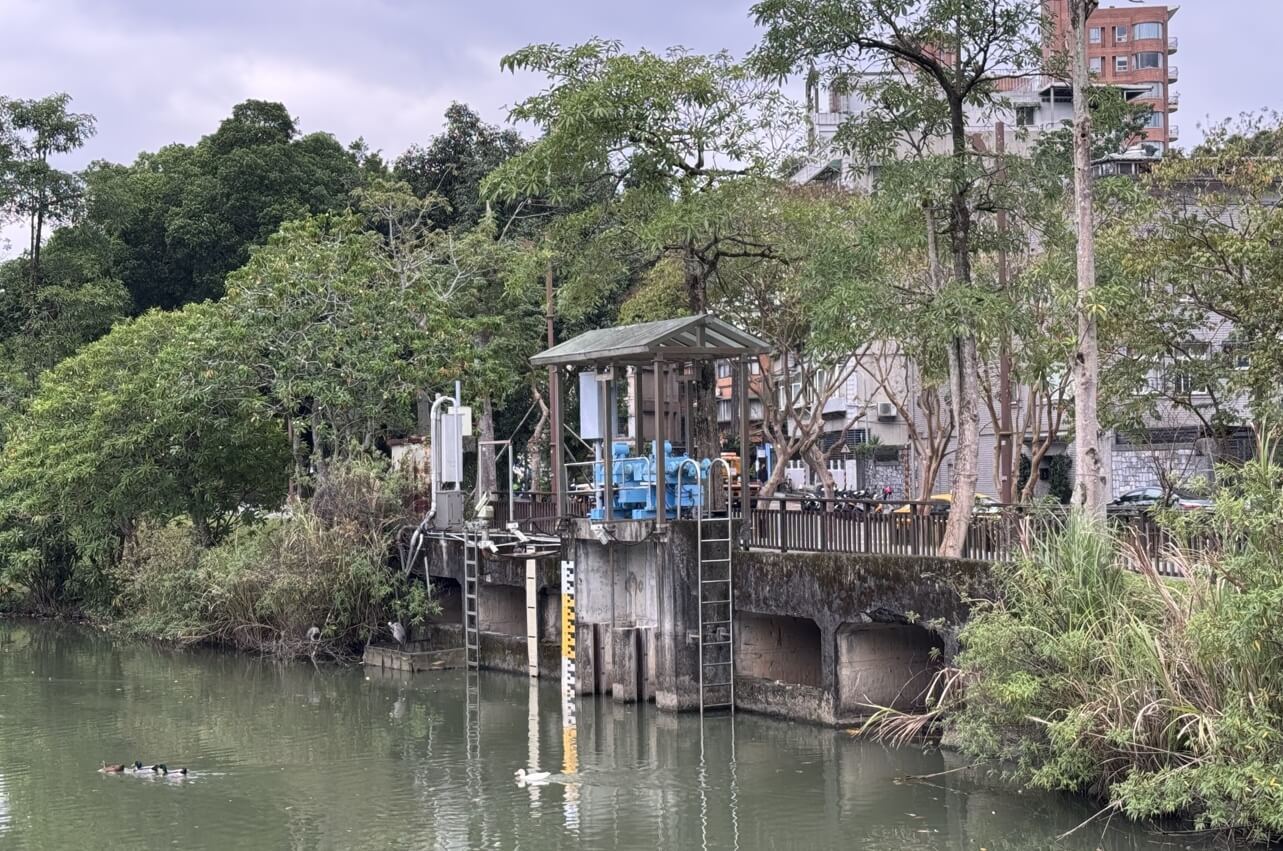 ↓後山埤雖小,卻也有溢洪閘門。後山埤過去是灌溉用的埤塘,滄海桑田,附近的高樓、大道,以前應該都是農田、小徑。