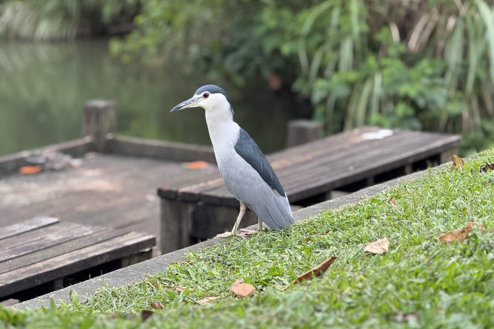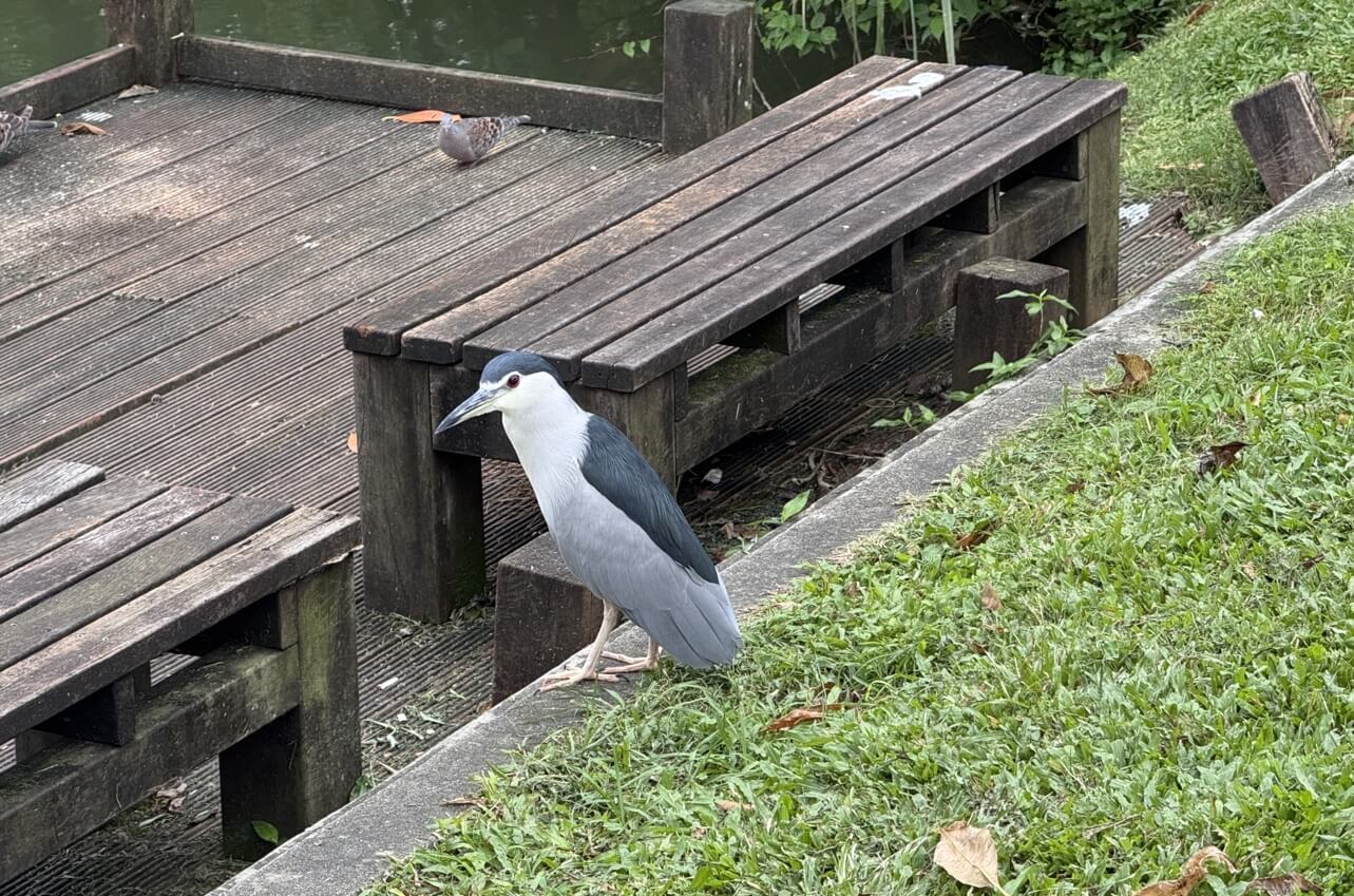↓池塘邊,常可見到夜鷺(暗光鳥),看起來長得非常健康,代表這裡的環境條件應該很不錯。