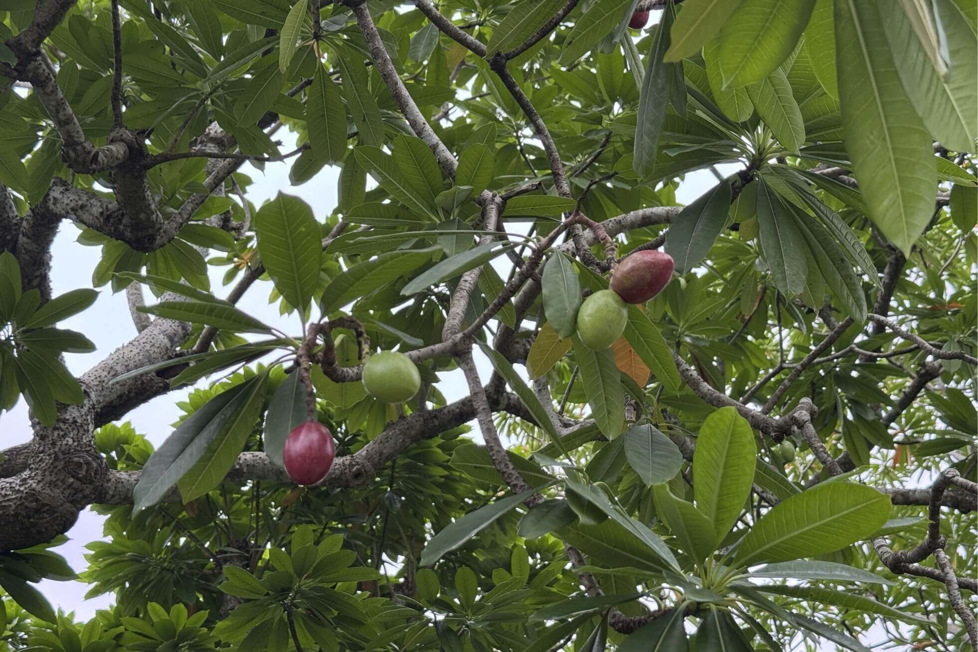 ↓公園內種植了許多樹種,這是樹葉及果實都有毒的海檬果,看起來很可口,樹上卻留著好多果實,想必鳥兒們都很有經驗,將它當作拒絕往來戶。