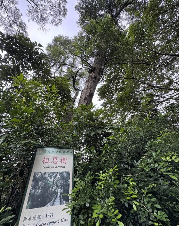 ↓園區內的高大樹木代表之一「相思樹」,是台北市列管保護的樹木。