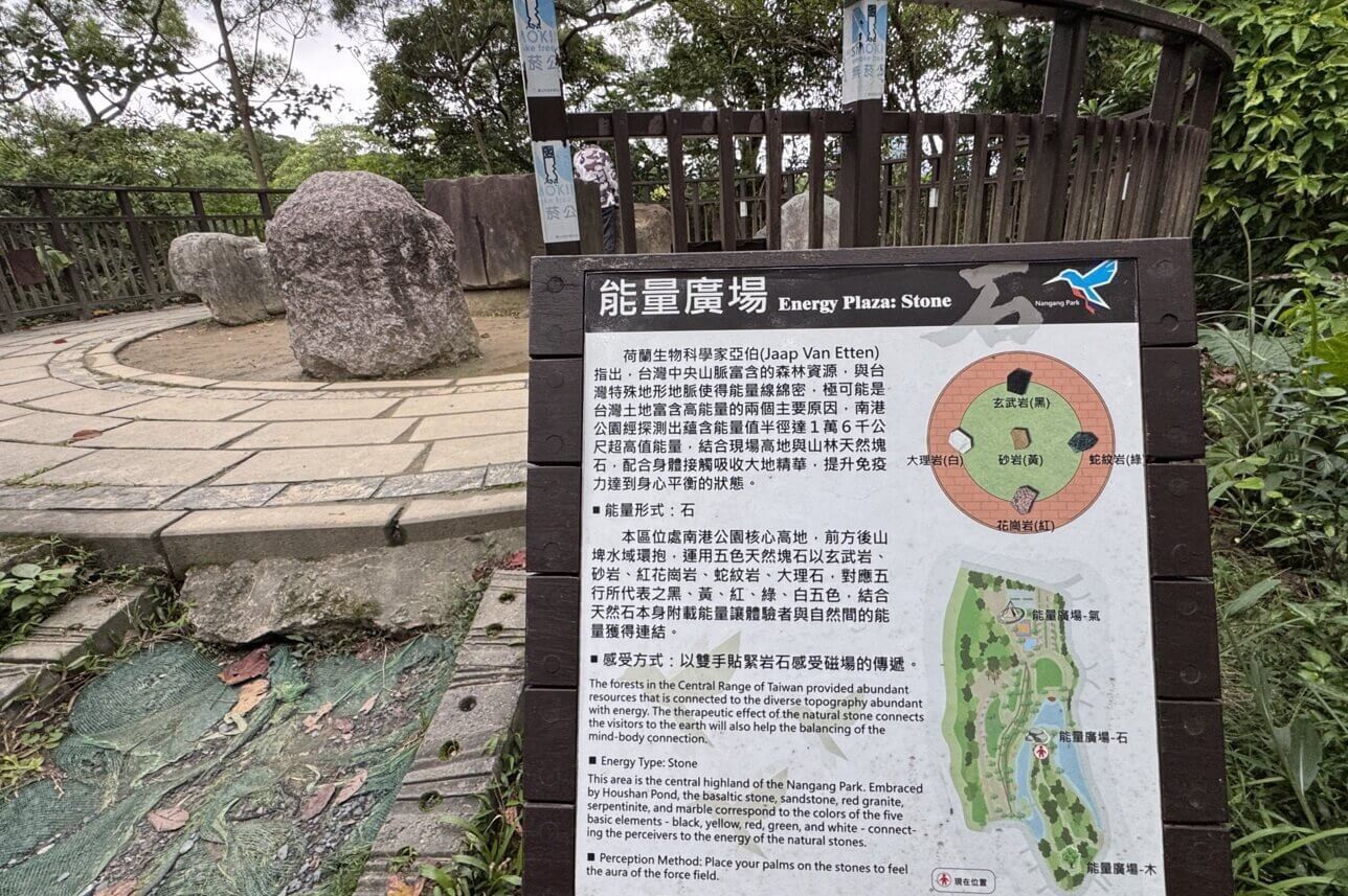↓這是「能量廣場-石」,台灣得天獨厚,有高山、有海洋,中央山脈蘊含超高能量值,而南港公園也同樣有各種礦物岩石,能量滿滿。