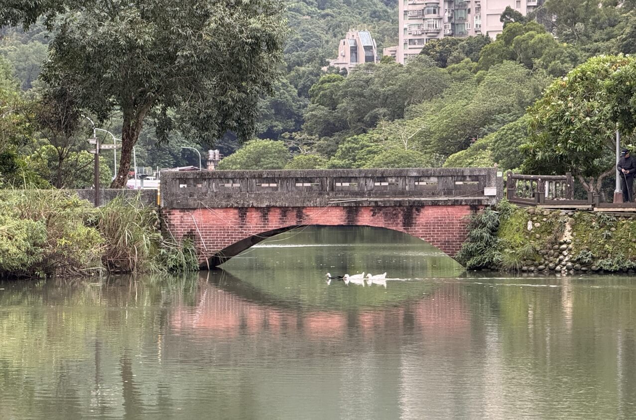 ↓遠方水鴨成群結隊,橋頭橋尾來回游一遍。
