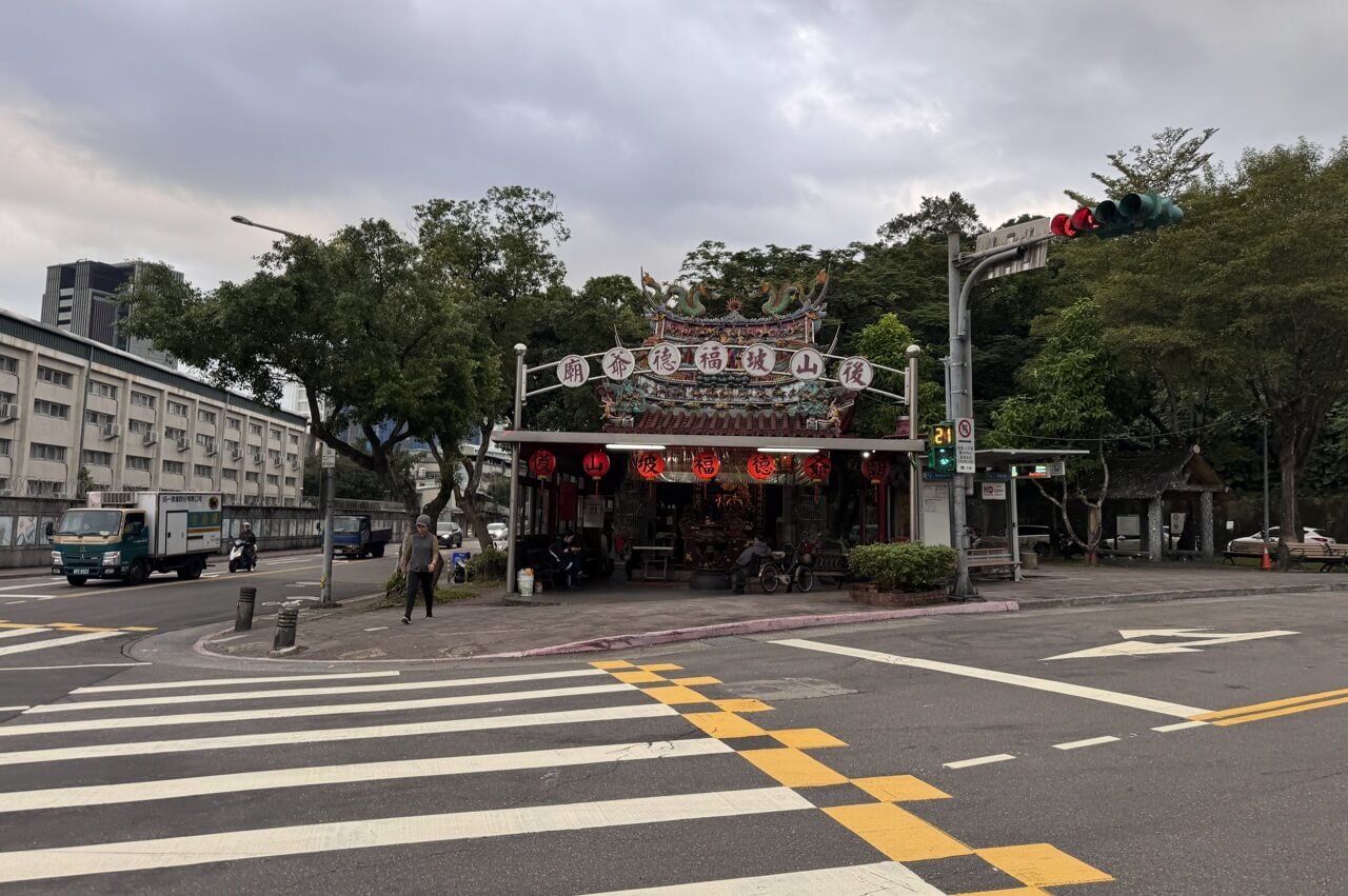 ↓繞過步道幾圈後,準備離開南港公園,牌樓前方的「後山坡福德爺廟」,是一間建於光緒初年(約1880年代)間的百年土地公廟。
