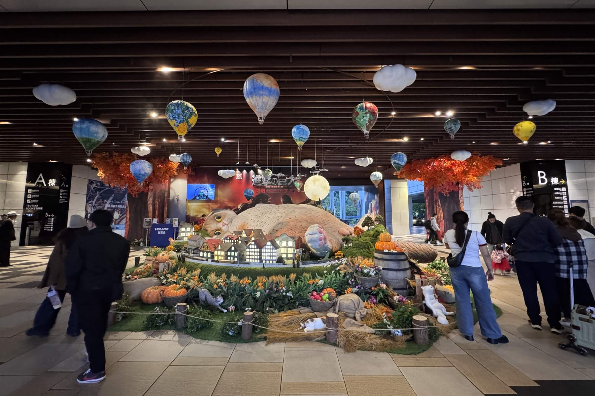 ↓一樓大廳,佈置了「進擊的巨人」裝飾物。