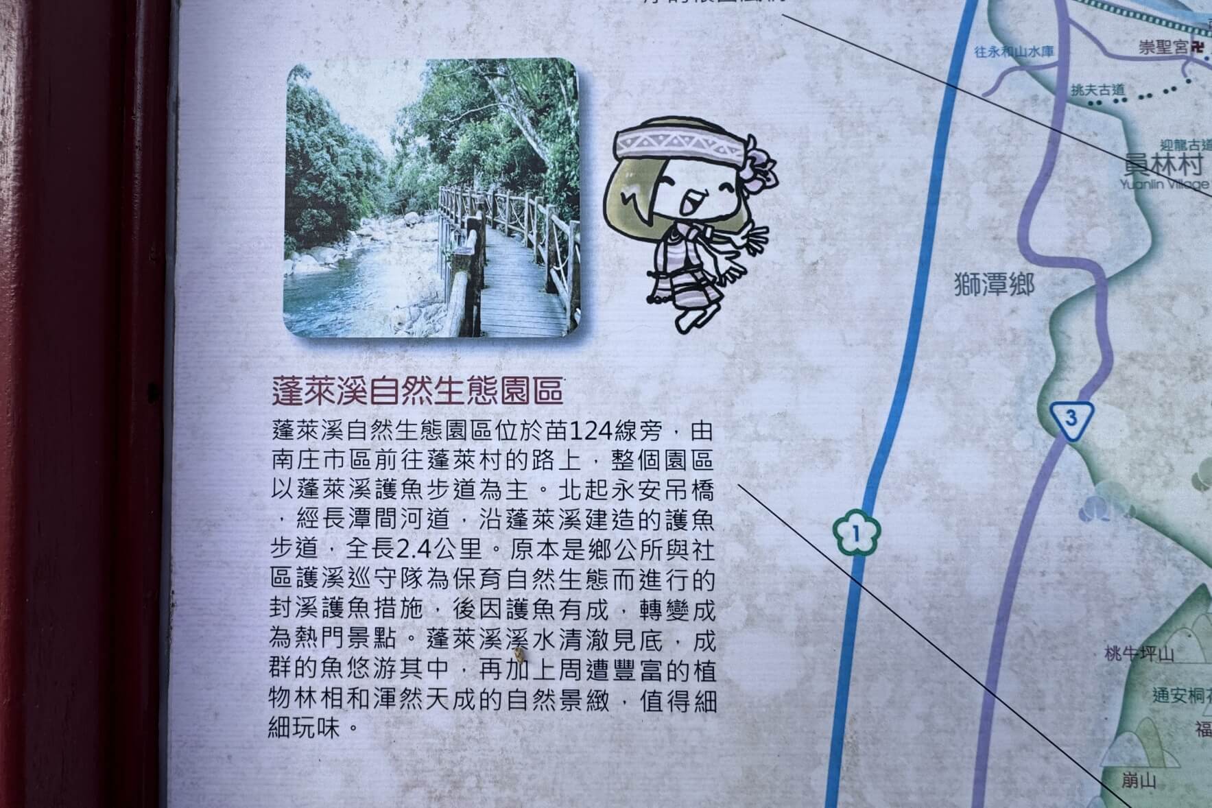 ↓從南庄鎮上開車,沿著【苗124線】鄉道走,約10分鐘便來到「蓬萊溪自然生態園區」。