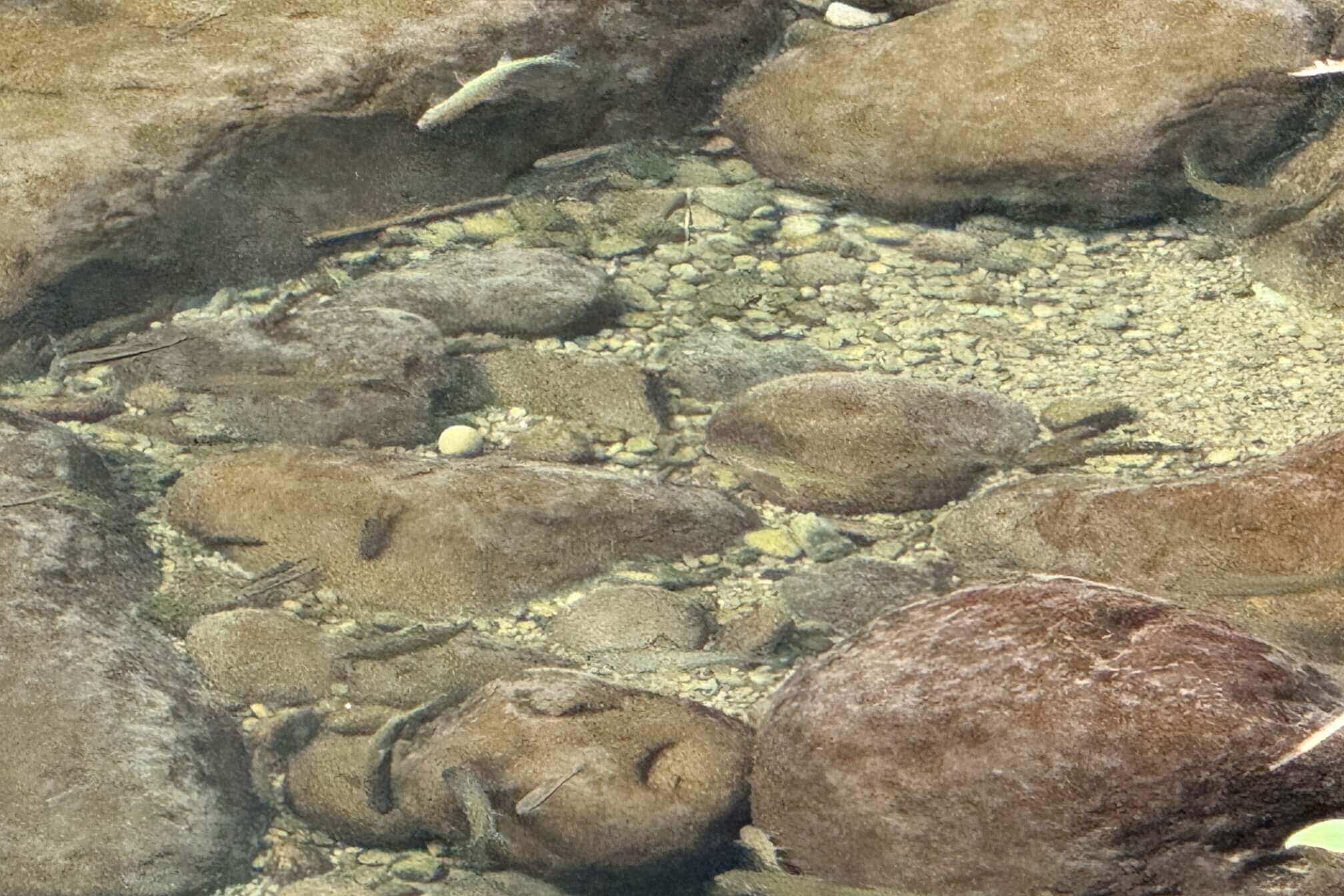 ↓各種魚兒穿梭在石縫間。